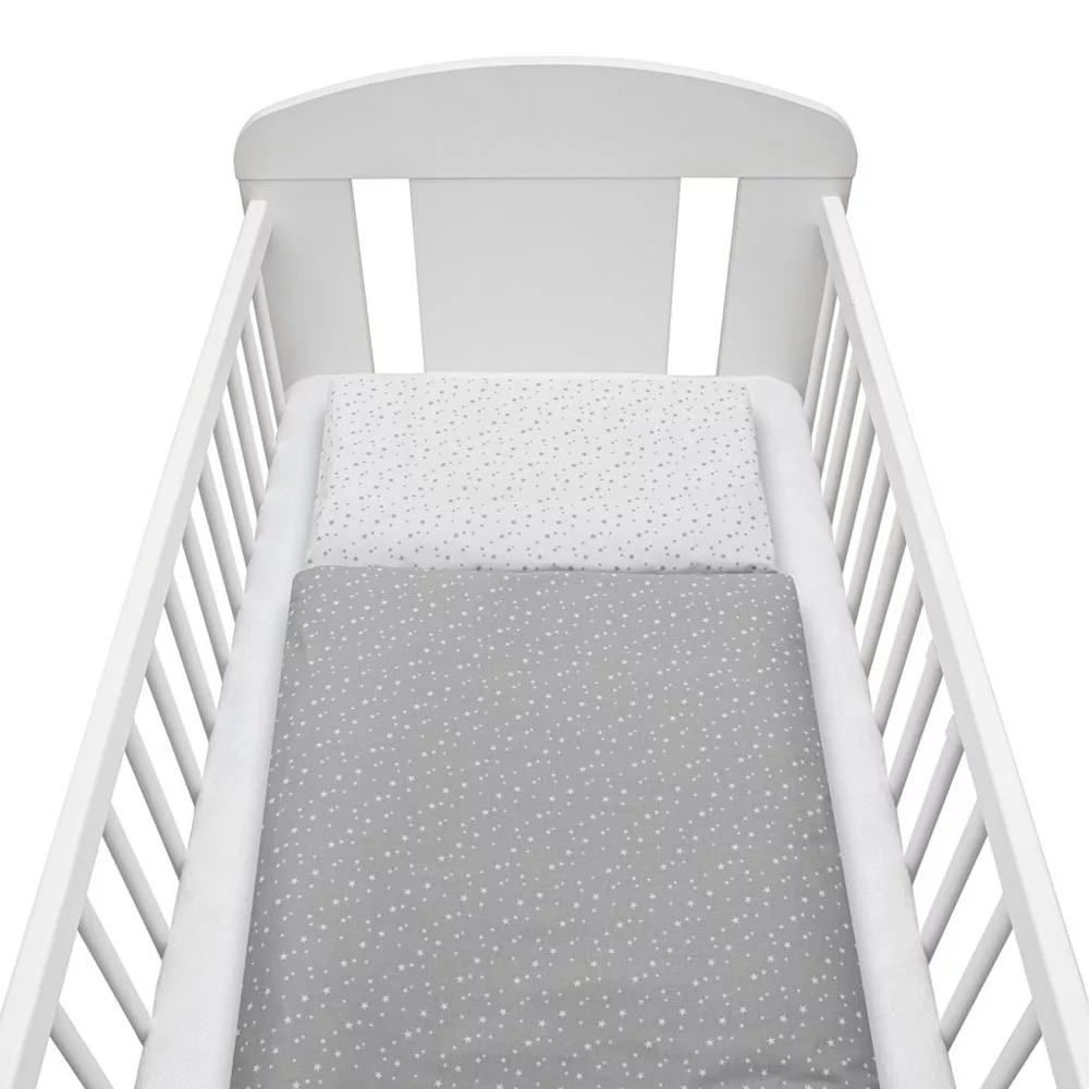 Kétrészes ágynemûgarnitúra New Baby. Szép motívummal díszitve. Párnahuzatot 40x60 cm és takaró huzatot 120x90 cm tartalmaz. Anyaga: 100% pamut.Ezek a termékek biztonságosak, mivel: a természetes pamut nem okoz bõrirritációt, mivel nem tartalmaz formaldehidet és egyéb, csecsemõkre káros anyagokat.Nem veszítenek színeik élénkségébõl és nem színezi el a többi ruhát.Kellemes mintázatúak és színei nyugtató hatásúak. Nem tartalmaznak gombokat, sem mûanyag illetve acél darabkákat, melyek veszélyesek lennének gyermeke számára.