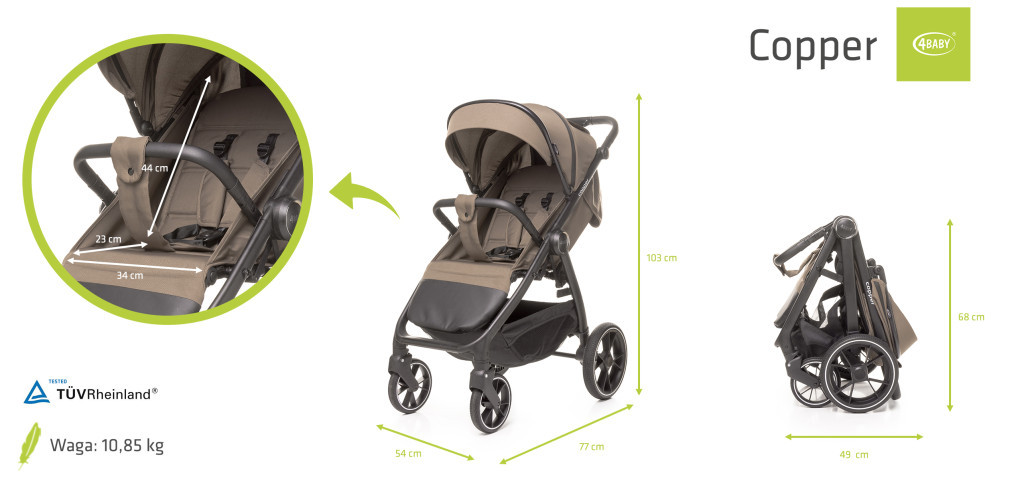 A Copper sport babakocsi a klasszikus stílus és a modern technológia tökéletes egyensúlyát kínálja. Ideális választás mindennapi városi használatra és kirándulásokhoz is. Könnyű, mégis strapabíró kialakítása és teljes felszereltsége garantálja a kényelmes és biztonságos utazást gyermeked számára.