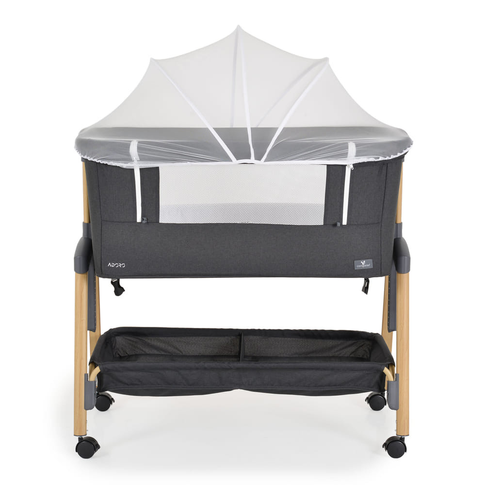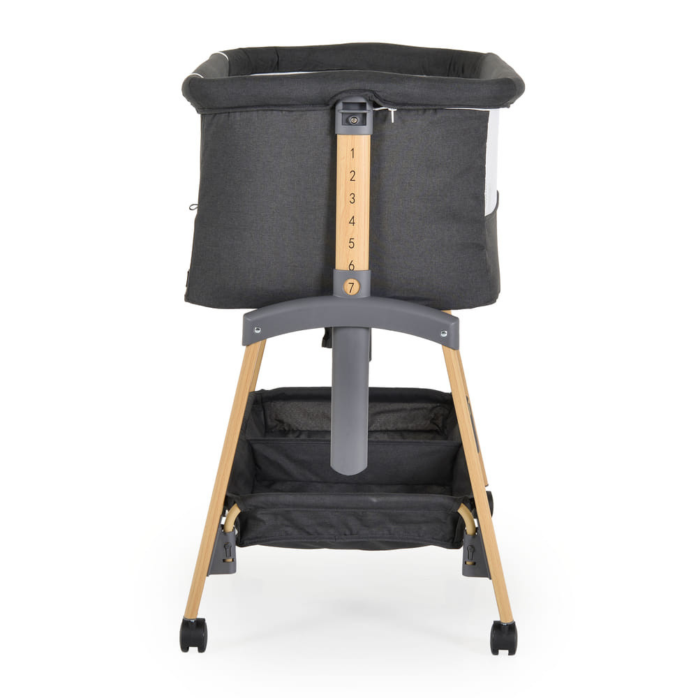Alkalmas babáknak 0 hónapos kortól. A „szülői ágyhoz való rögzítés” funkció megkönnyíti az első hónapok éjszakáit, hogy a szülő mindig az újszülött mellett legyen. Alkalmas minden típusú ágyhoz, minimum 50 cm magassággal a padlótól és maximum 80 cm. Magassága 7 pozíció egyikébe állítható, a kiságy pedig 30°-os szögben dönthető, hogy segítse babája emésztését, javítsa a légzést és kezelje a refluxot. 4 kerékkel és ütközőkkel ellátva a könnyű mozgatáshoz. A szuperkényelmes matrac és a puha oldalak megfelelő helyzetben tartják babáját, és biztonságban tartják. Normál kiságyként használható. Van szúnyogháló és egy kosár a kiegészítőknek.