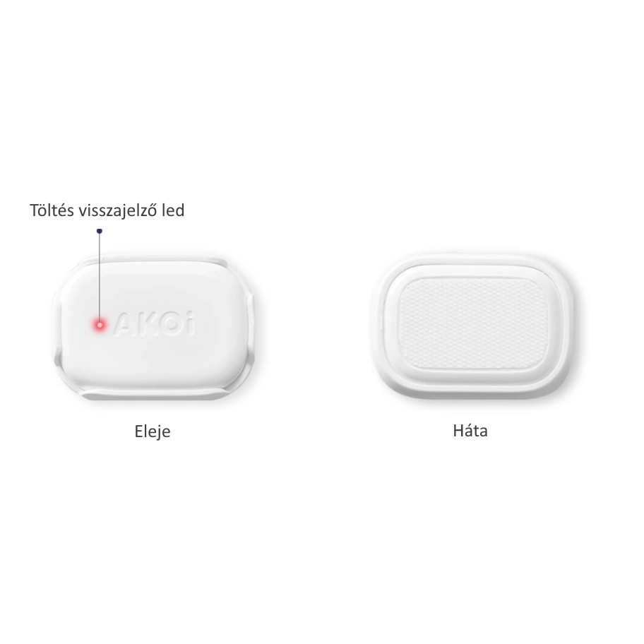 Élvezd a nagyobb lelki nyugalmat és a kényelmesebb babagondozás élményét az AKOi Heart készülékkel, amely számos hasznos funkcióval büszkélkedhet. Légzés-, forgás- vagy pelenkamonitorként mûködik. AKOi Heart-nek köszönhetõen nyugodtabban alhatsz.Az AKOi Heart készülék funkciói:1. funkció: mozgásfigyelõ: Figyeli a baba légzését és apró mozgásait 24 órában. 2. funkció: El- és átfordulás figyelõ: Segít megelõzni a balesetet, ha a babátok még nem tudja felemelni a fejét vagy felébred éjszaka.3. funkció: Pelenka figyelõ: Segít megelõzni a pelenkakiütést és a nyûgösséget azzal, hogy értesít, mikor le kell cserélni a pelenkát (szövetpelenkával is mûködik)- Plusz 1 funkció otthonodon kívülre: NEAR MEEz egy olyan funkció, amely riasztást indít, ha kisgyermeked már körülbelül 20 méterre van Tõled - elfut vagy elviszik. A NEAR ME lehet, hogy segít megelõzni a gyermek elvesztését.1. funkció: Ha a baba légzése több mint 10 másodpercre leáll, az AKOi Heart riasztást küld okostelefonodra.2. funkció: Ha a baba több, mint 120 fokkal elfordul, az AKOi Heart riasztást küld okostelefonodra.3. funkció: Ha a baba pisilt, az AKOi Heart riasztást küld okostelefonodra.- Egyszeri töltéssel (kb. 2 óra) egy hétig használható. Piros led jelzi a töltést, mely elalszik, amint a készülék teljesen fel van töltve.- Töltsd le az AKOi Heart applikációt, mely Android és iOS rendszerekre is elérhetõ, és a készülék bluetooth segítségével azonnal kapcsolódik. A bluetooth hatótávolsága kb. 10 méter szabadban – beltéren a készülék és a telefon közé esõ tárgyak (pl. fal) csökkentik ezt a távot. - Te választhatod ki, hogy a telefonod hanggal, rezgéssel, vagy a kettõvel együtt jelezzen neked. A négy funkcióhoz négy különbözõ hangjelzés társítható. - Az egyes funkciók szükség szerint ki- vagy bekapcsolhatók, a mozgás/légzés- és az átfordulás-figyelõ együtt is aktiválható, a pelenkafigyelõ csak önmagában.1-2. funkció: Felhelyezés: Az AKOI Heart készülék rögzítõ keretét vízszintesen behelyezzük a baba ruhája alá, és a köldöke alá pozicionáljuk, majd a keretbe a ruhaanyaggal együtt belenyomjuk a készüléket, ezzel felfogatva azt.3. funkció: A készüléket függõlegesen pozicionálva ráhelyezzük a babán lévõ tiszta pelenkára, kissé rányomjuk, majd kicsit megforgatva fixáljuk a hátoldalán lévõ tépõzárhoz hasonló rögzítõkkel (ilyenkor a keret nem szükséges).Kisfilm a termékrõl:https://youtu.be/pnXuDnRilPcTechnikai információk:Mérete: szélte 2,6 x hossza 3,9 x vastagsága 0,9 cmAkkumulátor: LIR2032-es újratölthetõ gombelemTartozék: USB töltõkábel