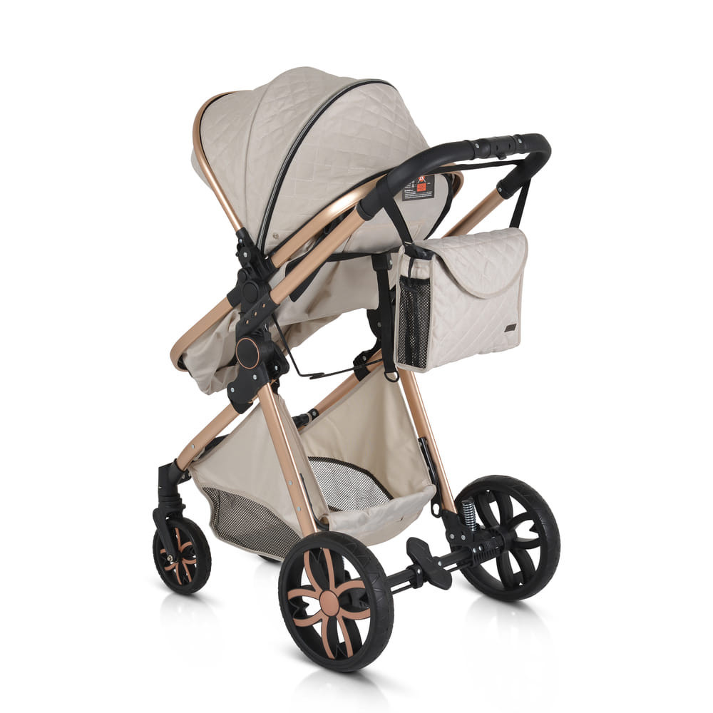Az Alma kombinált babakocsi kiváló minőségű, biztonságos anyagokból készült, és tartalmazza az összes szükséges tartozékot és modult, mint például: