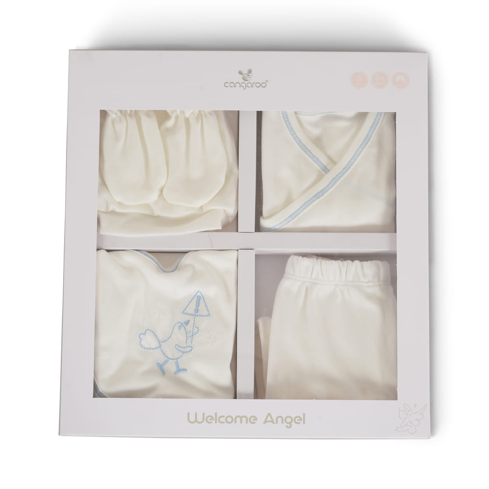Az 5 darabos babakelengye készlet teljes egészében 100% pamutból készült.