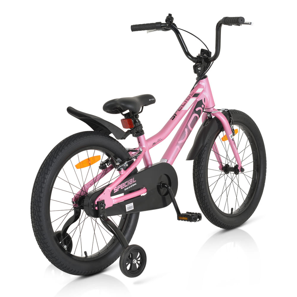 Alumínium váz alacsonyabb magassággal a könnyebb felülés érdekében, a felnőtt modellekhez hasonló kialakítással és színekkel. A földtől a puha ülés legalacsonyabb helyzetéig mért távolság 58 cm. Alumínium kormányfogantyú mancs, amely megemelkedik, hogy a gyermek kényelmesen állhasson az ergonomikus ülésen. V-fékes fékek alumínium fékkarokkal. Kézzel fonott alumínium bukókeretek 20*2,40 szélességű külső gumival. A gyerekkerékpár segédkerékkel, csengővel, fényvisszaverővel és deluxe sárvédőkkel van felszerelve. Alkalmas városi parkokba és aszfaltozott utakra, 6-10 éves korú, 115-135 cm magasságú gyermekek számára. A gyártó fenntartja a jogot az alkatrészek módosítására, amelyek hasonló minőségűre cserélhetők. A képen látható és a szövegben leírt alkatrészek között eltérések lehetnek.