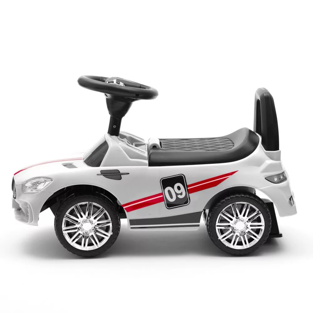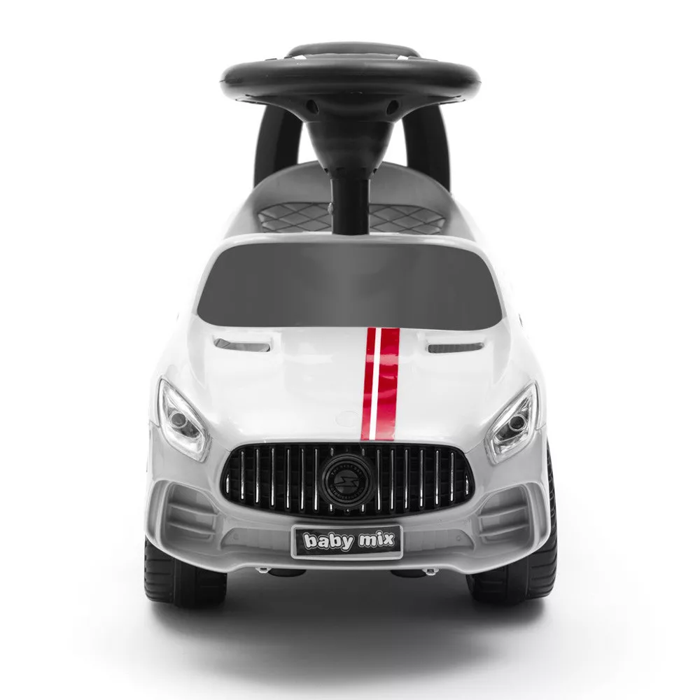 Bébitaxi Baby Mix RACER. A tökéletes kidolgozás és az olyan részletek, mint a kerekek, lámpák vagy a karosszériaforma, mindenki figyelmét felkeltik, és gyorsan kedvenc játékává válnak. Minõségi anyagokból készült, hangpanellel felszerelt. Remek és biztonságos játék. A játék alakja segít a gyermek motoros képességeinek fejlesztésében, amikor tanul járni. A hátsó speciális zárnak köszönhetõen versenyzõje védett a felborulás ellen. 3 db 1,5 V-os AA elemekre mûködik, nem a csomagolás része. Az elemeket a kormánykerékbe kell behelyezni, máshova nem.JELLEMZÕK:- Forgó elsõ kerekek- 12 hónapos kortól alkalmas gyermekek számára- Maximális terhelés 25 kg- Hely az ülés alatt- A kormánykeréken lévõ hangpanel (3x AA elem)- Vonzó színek- Profilozott ülés, kényelmes háttámla- Tartós és minõségi anyagokból készült- Könnyû összeszerelés a mellékelt útmutató szerintMÉRETEK:- 65 x 30 x 39 cm- kerék átmérõje 14 cm- súlya 2,48kg, dobozzal együtt 3,25 kg- doboz méretei: 65 x 30 x 25 cm
