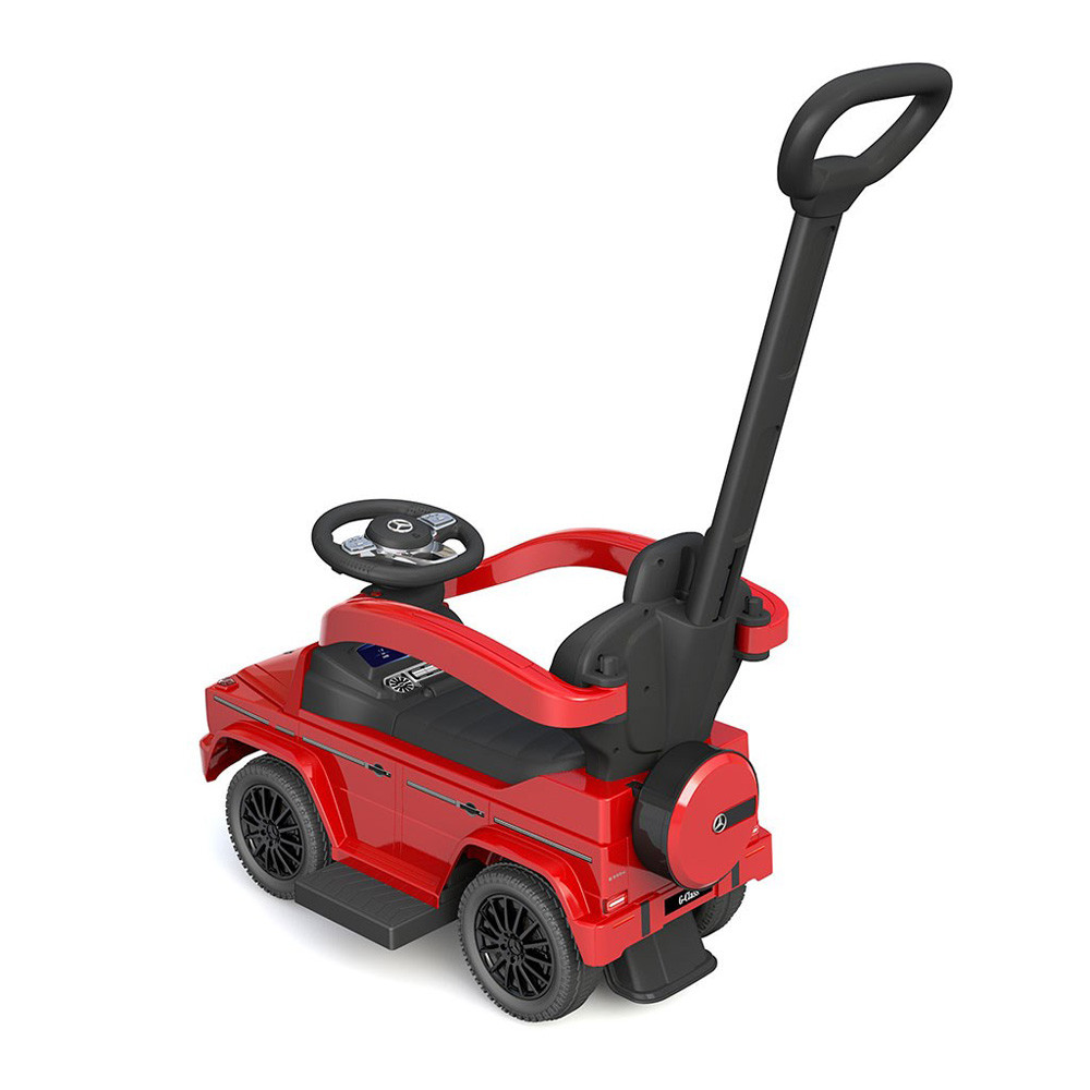 Baby Mix Mercedes Benz G63 Baby Mix kiváló minõségû mûanyagból készült. Sportos megjelenése nem csak minden gyermek, hanem a szülõk figyelmét is felkelti. Kis versenyzõje igazi Mercedesnek fogja érezni magát. A robogó segít fejleszteni gyermeke motoros készségeit, és sok szórakozást és örömet garantál számára. A menetben két gomb található a kormányon díszkürttel és dallamokkal. A robogó a legkisebb gyerekeknek készült, akik már tudnak ülni, valamint azoknak a gyerekeknek, akik már megtanultak járni. A gyerekeknek nagyon jól fog szórakozni a játékautó, mert egy igazi Mercedes utánozhatatlan külseje, kényelmes széles ülés tárolóhellyel, kormánykerék, kiváló minõségû mûanyag kerekek és kényelmes, de szilárd vezetõléc, amellyel a a játék irányítható. A vezetõléc, a karfák és a lábtámaszok eltávolíthatók, így a gyermek klasszikus kidobóként használhatja az autót. Az elemeket a csomag nem tartalmazza (2x AA 1,5 V).Jellemzõk:- A játékautó kiváló minõségû anyagból készült, melyet a csomag tartalmaz:- 24 hónapos kortól gyermekek számára készült- Gyermekeknek 25 kg-ig- A Mercedes márka hûséges dizájnja- Pohártartó- Tárolóhely az ülés alatt- Kürt- Dallam- Vonzó színek- Stabil és kiváló minõségû mûanyag- Kivehetõ mûanyag vezetõléc, kar- és lábpárnák, valamint a háttámlaMéretek:- Hossza kb.85,5 cm- Szélesség lábtartókkal együtt: 40,5 cm- Vezetékes kocsi magassága: kb. 95 cm- Súlya 4,3 kg