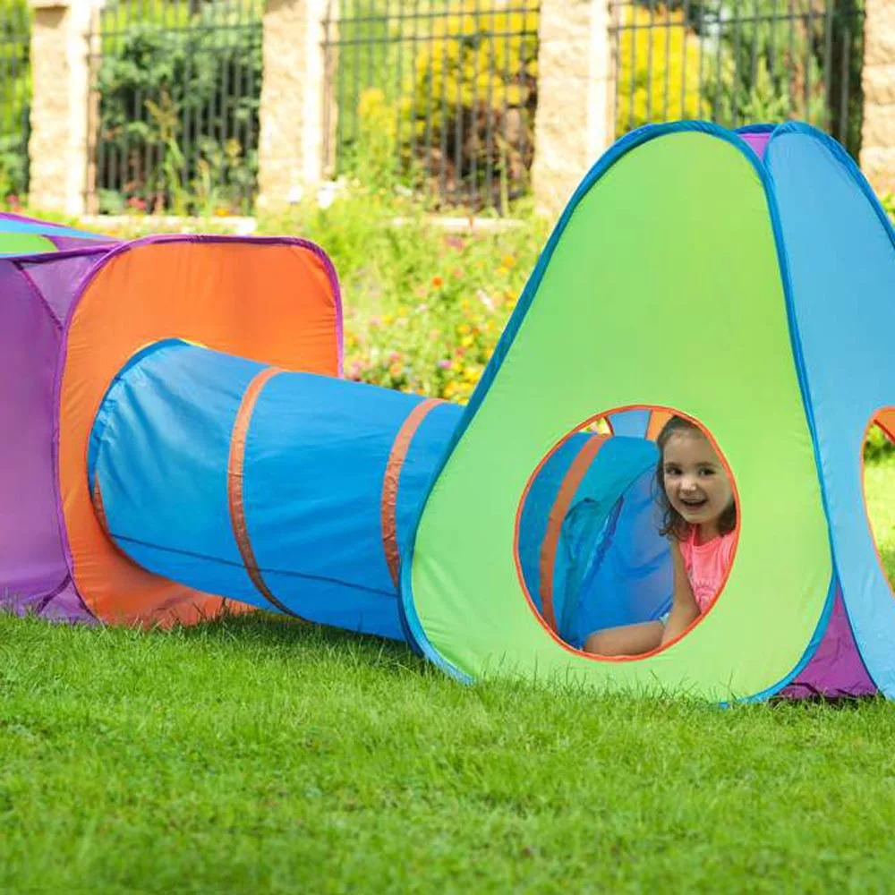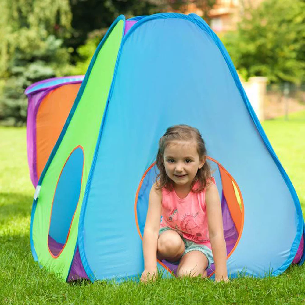 Gyerek sátor Baby Mix 3az1-ben. Három darabból álló készlet, amely két külön sátrakból áll, amelyeket egy alagút kapcsol össze.- nagyszerû szórakozás otthon és az udvaron is- minõségi anyagból készült- sátor alagúttal remekek búvõ hej- gyorsan összecsukható és szétszerelhetõ- 3 éves kortól ajánlottméretei:- teljes hossz 265 cm- szélesség 95 cm- magasság 94 cm- alagút hossza 119 cm- alagút átmérõje 45 cm- súlya 1,68 kg