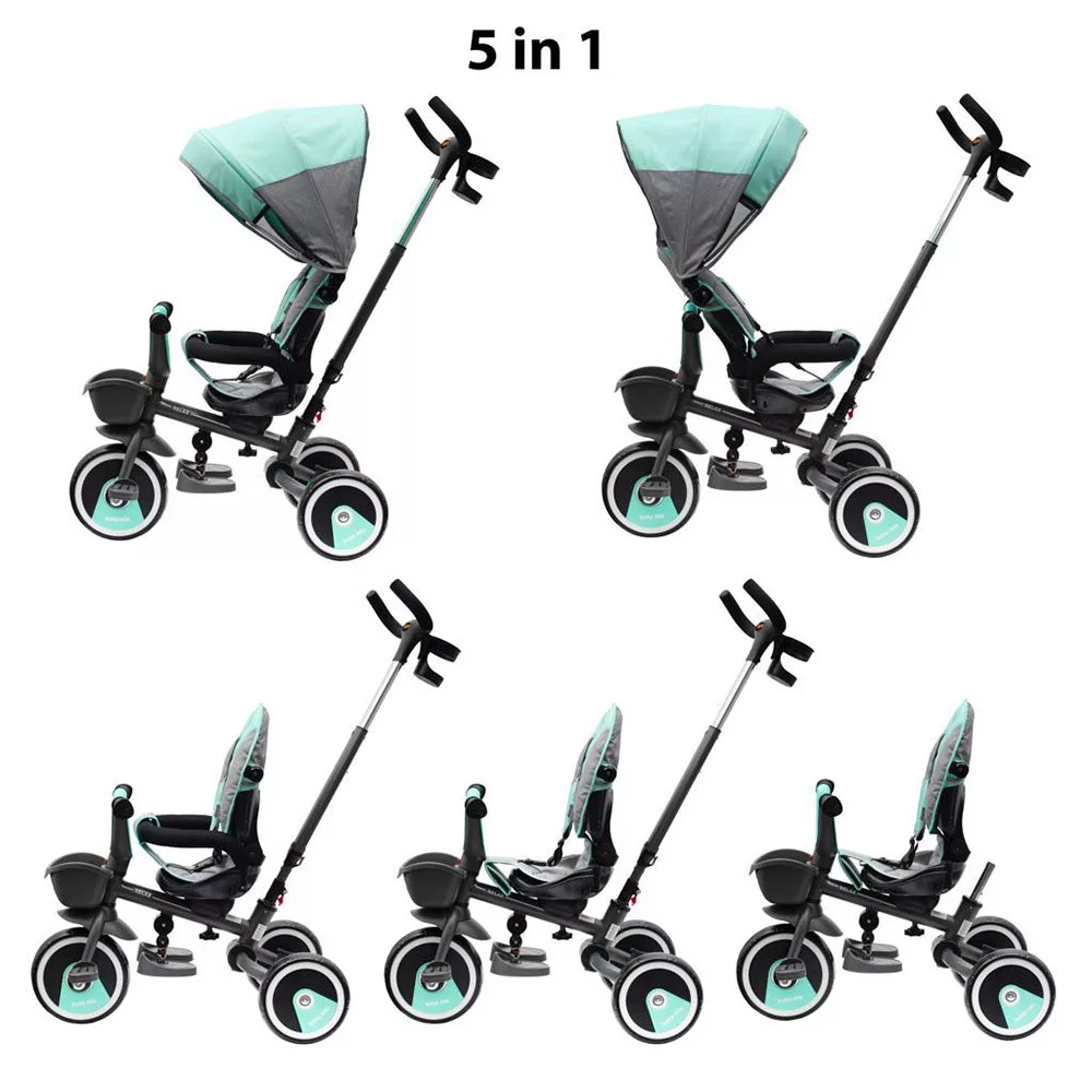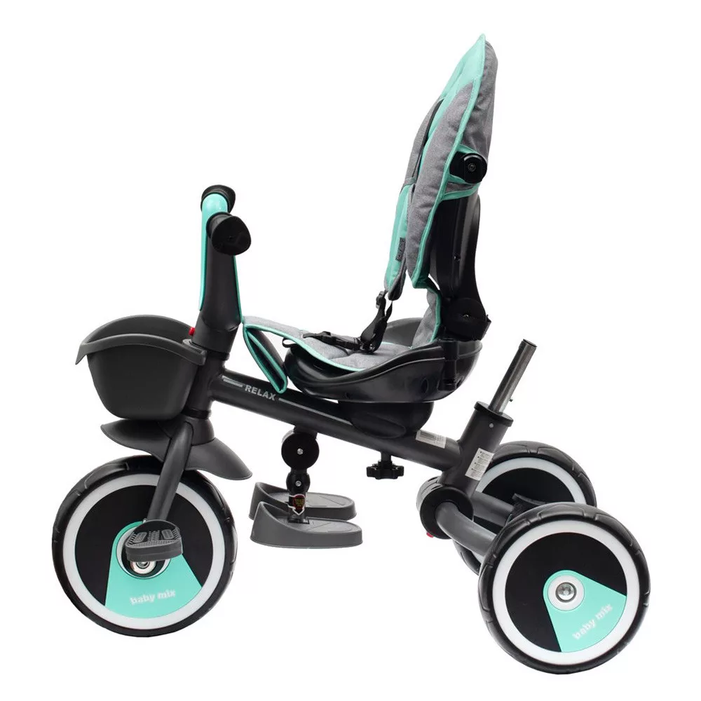 A Baby Mix 5 az 1-ben RELAX pedálos gyerek tricikli egy többfunkciós járgány, amely a többi GROW UP termékhez hasonlóan együtt nõ a gyerekkel. A triciklit a gyermek és a szülõ is kezelni tudja egy állítható tolókar segítségével. A tolókar, a napellenzõ és egyéb alkatrészek eltávolítása után a járgány tricikliként funkcionál. Modern felépítésû tricikli ergonomikus kialakítású, kényelmes üléssel, amely eltolható és 360 fokban elforgatható, így a gyerek a haladási irányban vagy azzal szemben is haladhat. Kiváló minõségû, tartós anyagokból készült, összecsukható szerkezetének köszönhetõen könnyen szállítható például a csomagtartóban. Összeszerelése rendkívül egyszerû és intuitív, nem igényel szerszámokat. A közlekedés során a levehetõ kiesésgátló keret, az ötpontos biztonsági öv, a megerõsített EVA habból készült kényelmes lábtartók és kerekek gondoskodnak a kényelemrõl és biztonságról, amelyek nagyszerûen elnyelik az ütéseket, tökéletes tapadást biztosítanak, és nem igényelnek utánfújást. Praktikus kosarában játékok és más kellékek is tárolhatók.A Baby Mix 5 az 1-ben RELAX pedálos tricikli egy igazán széles körû felhasználással rendelkezõ járgány, amely több évig különbözõ formában kíséri végig a gyerekeket.A kiváló minõségû anyagoknak, magas fokú biztonságnak és a sokféle felhasználási lehetõségnek köszönhetõen a Baby Mix RELAX gyerek tricikli rendkívül népszerû és keresett termék a szülõk körében.JELLEMZÕK:- Erõs acél váz, összecsukható felépítésének köszönhetõen könnyen szállítható például a csomagtartóban- Nagyméretû összecsukható napellenzõ betekintõ nyílással- 360 fokban elforgatható ülés – elõre- és hátrafelé haladáshoz- Eltolható ülés – a megfelelõ távolság beállításához a gyermek és a pedál között- Állítható dõlésszögû háttámla- Leszerelhetõ, 100 cm magasságig állítható tolókar- Szabadonfutás funkció – állítókerék az elsõ keréken (a gyerek szabadon pedálozhat)- Ötpontos biztonsági övvel felszerelt ülés központi rögzítéssel- Összecsukható lábtartó- Palacktartó, játékkosár- Leszerelhetõ lábtartópár- Elsõ kerék sárvédõvel- Lábbal mûködtetett fékpedálok a hátsó kerekeken- Alumínium- és magnéziumötvözetbõl készült kormány- Megerõsített EVA habból készült kerekek, amelyek nem igényelnek utánfújást- A tricikli maximális terhelhetõsége 25 kg- 1,5–5 éves kor között ajánlott- Elérhetõ színek: kék, menta, rózsaszín, piros, fehér- Az EN 71–1, EN 71–2, EN 71–3 európai biztonsági szabványoknak megfelelõen tesztelt és engedélyezett termékMÉRETEK:- Magasság: 100 cm- Hosszúság: 73 cm- Állítható tolókar magasság: 83–100 cm- Kormány szélessége 43 cm- Tricikli szélessége: 49 cm- Kerékátmérõ: elsõ kerék 10", hátsó kerekek 8"- Maximális terhelhetõség: 25 kg- Tömeg: 11,34 kgCSOMAGOLÁS:Méretek: 61x41x32 cmTömeg beleértve a csomagolást: 12,5 kg
