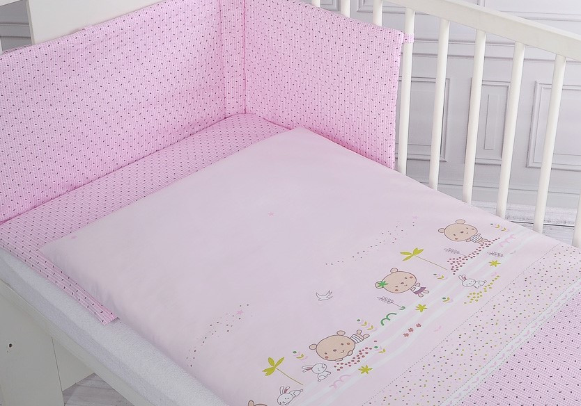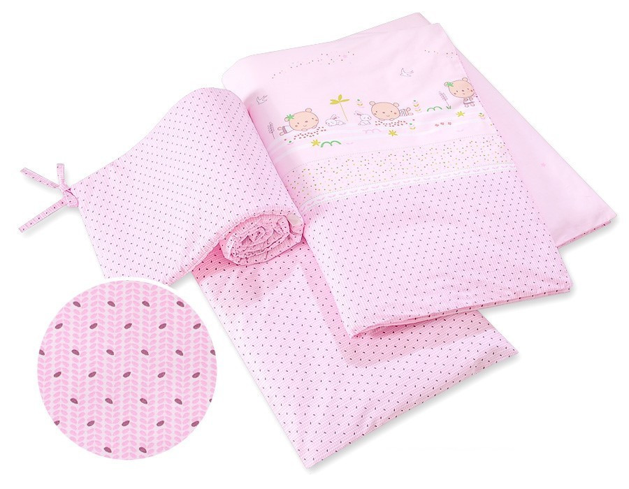 BabyLion Prémium 3 részes ágyneműhuzat szett - Rózsaszín - Édes mackók