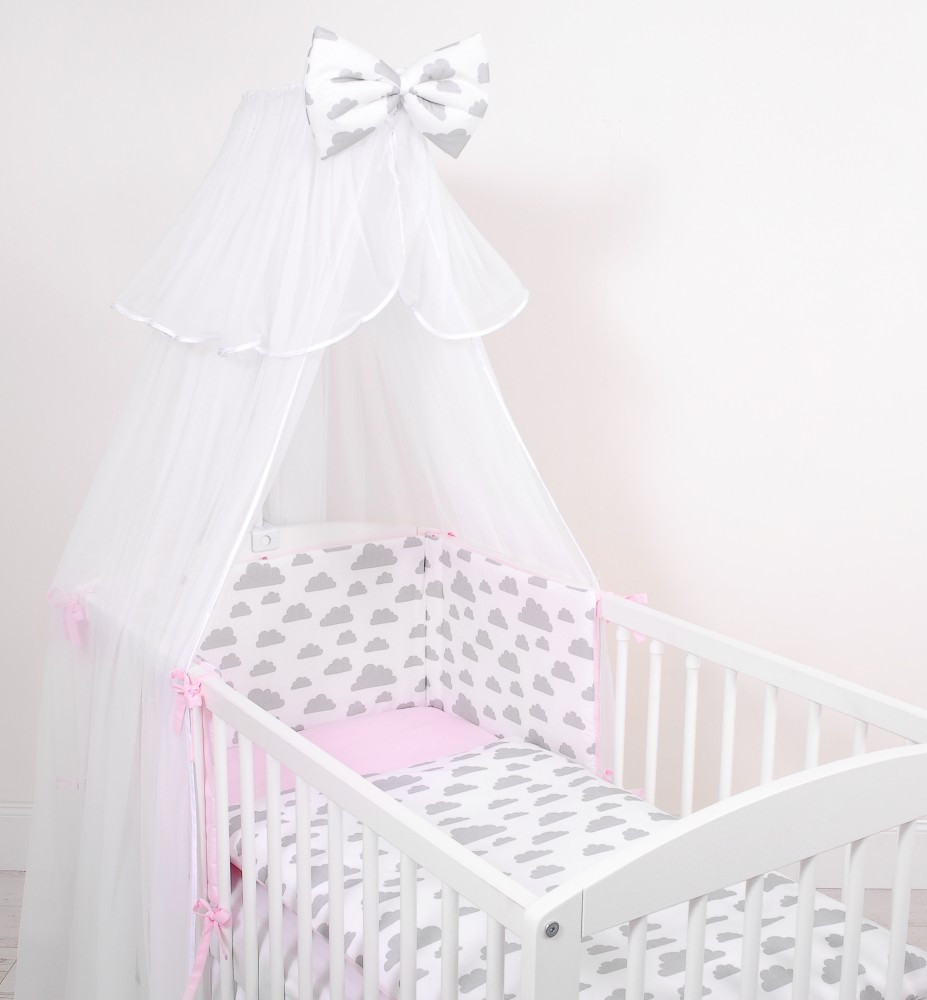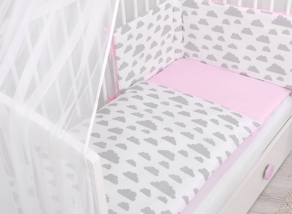 BabyLion Prémium 5 részes ágyneműhuzat szett -Rózsaszín - Szürke felhők