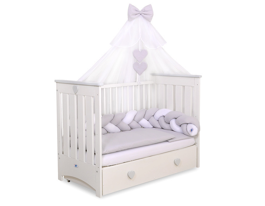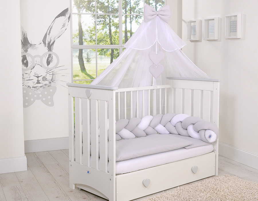 BabyLion Prémium baldachin - Fehér - Szürke masni