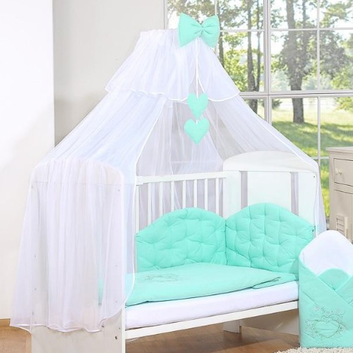 BabyLion Prémium baldachin függöny - Fehér - Menta masni