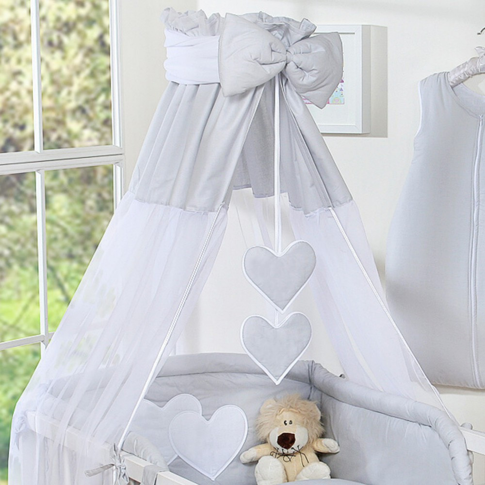 BabyLion Prémium baldachin függöny - Szürke szívecskékkel