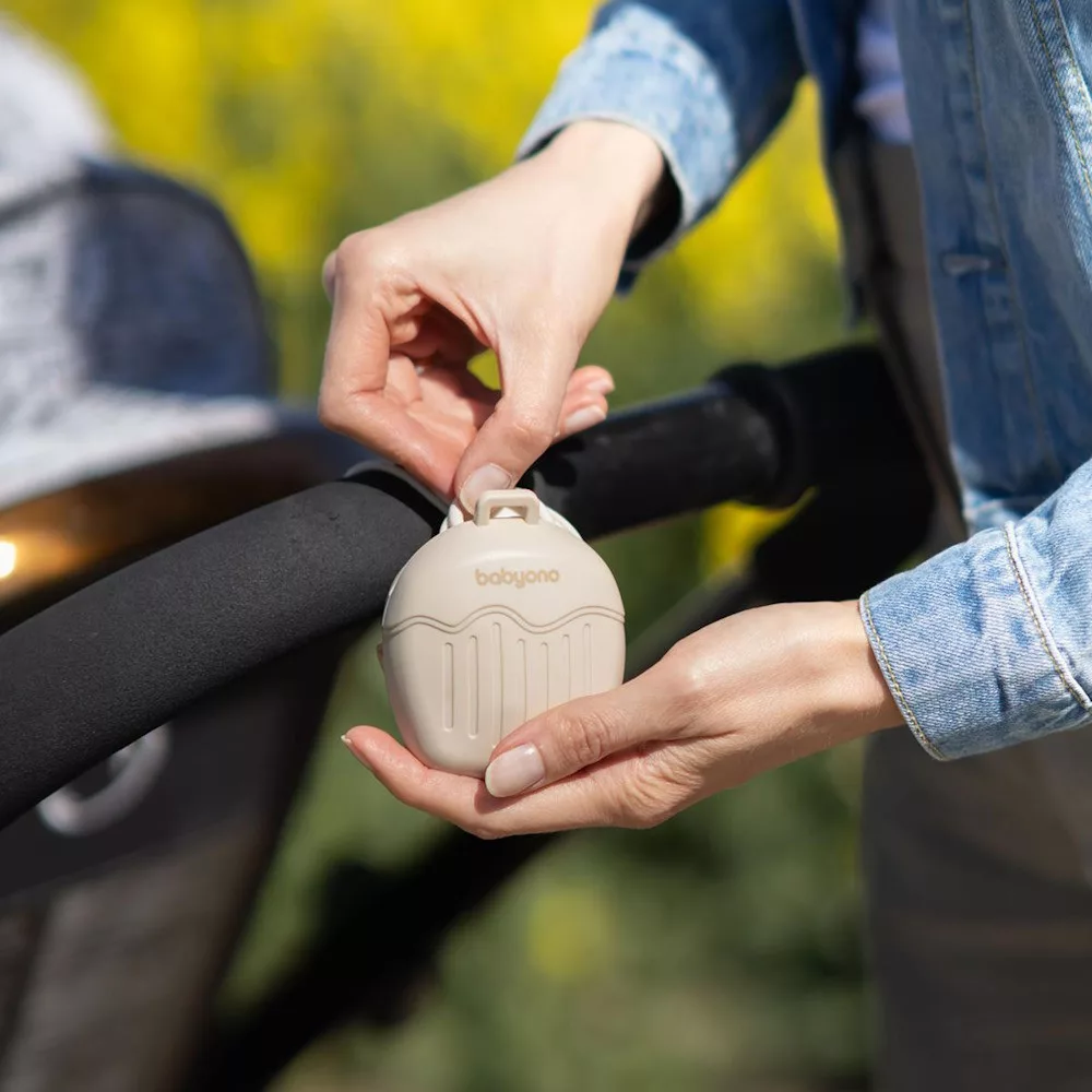 Sír a babád, próbálod megnyugtatni, de nem találod a cumiját? Felejtsd el! Szilikon cumitartónk megakadályozza, hogy beszennyezõdjön vagy elvesszen – akár otthon, akár kint vagytok, akár utaztok. Babád kedvenc cumija tiszta és bármikor használatra kész marad.A tokban két normál méretû cumi is elfér. Mivel a termék hosszú és rugalmas pánttal rendelkezik, táskára, hátizsákra, babakocsira vagy kiságyra is rögzítheted. Egyetlen kéz is elegendõ a cumi gyors behelyezéséhez és kivételéhez egy speciális lyukon keresztül.A cumitartó BPA-mentes szilikonból készült. Puha, tartós és mosogatógépben mosható. Biztonságos és higiénikus helyet biztosít a kicsi cumijának.CUMIVÉDELEMA szilikon cumitartó doboz megvédi babád kedvenc cumiját a szennyezõdésektõl és a véletlen elvesztéstõl. Hasznosnak bizonyul otthon, a szabadban és utazás közben is.HELY KÉT CUMI SZÁMÁRANem elég egy cumi? Nyugodtan tegyél bele egy másikat. A tokban két normál méretû cumi is elfér. Felkészülhetsz a váratlanra.EGYSZERÛ RÖGZÍTÉSCumitartónk hosszú és rugalmas pánttal rendelkezik, így táskára, hátizsákra, babakocsi fogantyújára vagy kiságy vázára rögzítheted. Többé nem kell cumit keresgélned a kézitáskában! A játszócumi mindig kéznél lesz.GYORS HOZZÁFÉRÉSA cumit könnyen behelyezheted és kiveheted egy speciális lyukon keresztül – ehhez csak egy kezedre van szükséged, és nem kell levenned a tokot. Gyorsan megragadhatod a cumit, hogy megnyugtasd a síró babát.UNIVERZÁLISA cumitartó sokféleképpen használható. Amint már nem használod cumitárolásra, kulcsokat és más kisebb dolgokat tárolhatsz benne. Minimalista kialakítása tökéletesen illik bármilyen táskához.BIZTONSÁGOS SZILIKONCumitartónk nem mérgezõ, BPA-mentes szilikonból készült. Alkalmas arra, hogy a baba holmijával érintkezzen. Biztonságos tárolóhely a cumi számára.SÉRÜLÉS-ÁLLÓPuha szilikon cumitartónk ellenáll az eséseknek, ütéseknek és zúzódásoknak. A mûanyag termékekkel ellentétben a repedésveszély kiküszöbölve. A termék hosszú ideig szolgálni fog.KÖNNYEN TISZTÍTHATÓCsak nedves ruhával kell áttörölnöd a tokot; alternatívaként folyó víz alatt vagy mosogatógépben is elmoshatod. Így könnyen tisztán tarthatod a terméket, és higiénikus körülményeket biztosíthatsz a cumi tárolására. BIZTONSÁGI INFORMÁCIÓKKicsomagoláskor távolíts el minden olyan elemet, amely veszélyes lehet a gyermekre. Minden használat elõtt ellenõrizd a terméket. A sérülés vagy kopás elsõ jelére dobd ki. Mindig felnõtt felügyelete mellett használd. A termék nem játék. Tájékoztatásul javasoljuk a csomagolás megõrzését. A csomagolást tartsd gyermekektõl elzárva. Elsõ használat elõtt forrázd le a terméket kívül és belül is forró vízzel (ne forrald a terméket!), majd szárítsd meg. Mosogatógépben mosás esetén a program után azonnal vedd ki és szárítsd meg. Ha a terméket mosogatás után a mosogatógépben hagyod, fennáll a deformáció veszélye.Mûszaki tulajdonságok• Anyag: szilikon (BPA mentes)• Baba életkora: Újszülött kortól• Termék mérete: 22 x 7,5 cm• Csomag mérete: 20 x 12 cmMegjegyzés: Az ár egyetlen cumitartó tokra vonatkozik. A képeken látható minden más termék (pl. hátizsák, játszócumi, stb.) csak illusztrációként szolgál.