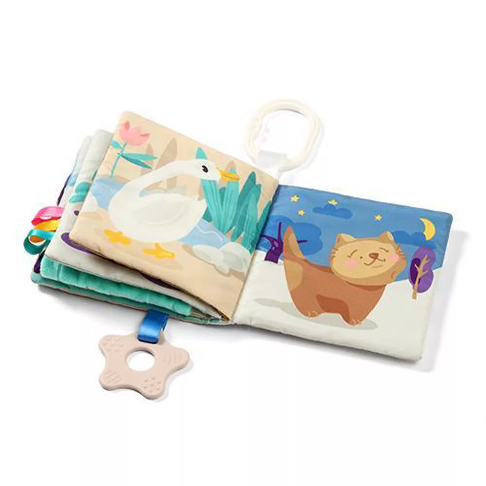 Egy puha és színes „Farm” könyv a válasz a baba kognitív szükségleteire. A játék végigkíséri kicsinyét annak korai fejlõdési szakaszában, serkentve vizuális, hallási és mozgáskoordinációs készségeinek fejlõdését. Az élénk színek és a különálló formák megfigyelése sok örömet okoz a babának, és megmozgatja érzékszerveit. A könyv a legjobb biztonságos anyagokból készült.A könyvhöz biztonságos rágóka van rögzítve. A baba masszírozhatja fájdalmas ínyét.A susogó elemek felkeltik a baba érdeklõdését, és felfedezésekre ösztönzik. A gyengéd hang hatással van a hallásra.A könyv különféle textúrájú és színû anyagokból készült. Nélkülözhetetlen a kicsi érzékszervi fejlõdéséhez. A játék a vizuális, hallási és mozgáskoordinációt is támogatja.A színes címkék a világ felfedezésére ösztönzik a babát, és felkeltik a kíváncsiságát. Segíthetnek a kicsinek beindítani a fantáziáját és fejleszteni a manuális készségeket.Praktikus fogasA speciális akasztónak köszönhetõen a könyvet a kiságyra, babakocsira vagy az autó biztonsági ülésére rögzítheti. Ezért viheti a játékot sétálni vagy autóval kirándulni.- Segít a vizuális-hallási-motoros koordináció elsajátításában- Segít gyakorolni a motoros és kézi készségeket (fogás)- Formák, textúrák és hangok stimulálásával fejleszti a kognitív képességeket- Fejleszti a gyermek fantáziáját- Könnyen rögzíthetõ kiságyon, babakocsin vagy babaülésenAnyaga: poliészterMéretek: szélesség 12 cm x magasság 12 cm x mélység 2 cmSúly: 0,05 kg