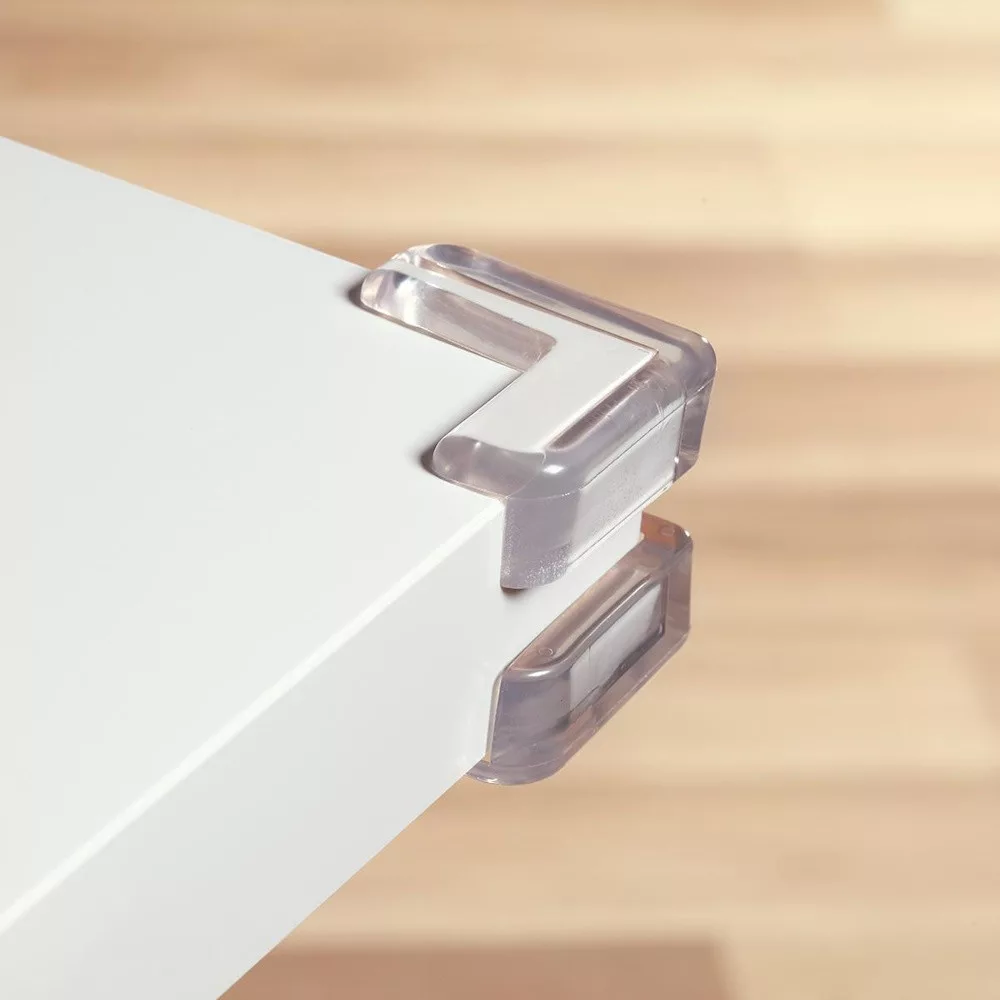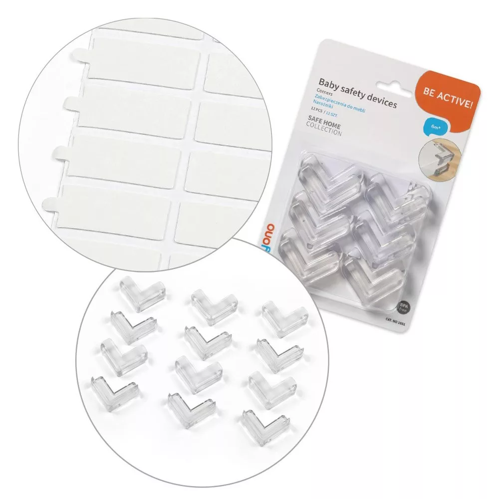 Stílusos bababiztonság! L alakú sarokvédõink segítenek gondoskodni babád biztonságáról, megvédve õt a fájdalmas sérülésektõl. Sikeresen védik a bútorok és más berendezések éles sarkaitól. Teret biztosítanak a szabad szórakozásnak és a növekedésnek.A védõket sima és teljesen tiszta felületre rögzítheted. A vastagságtól függõen, akár egy asztal szélének mindkét oldalán is.Az erõs 3M ragasztószalag lehetõvé teszi a biztonsági elemek könnyû és gyors felhelyezését. Mivel szépek és átlátszóak, alkalmazkodnak otthonod különbözõ bútorszíneihez.UNIVERZÁLIS HASZNÁLATSarokvédõink megvédik a babákat a bútorok és berendezések éles sarkaitól, akár a szél mindkét oldalán is. Tompítja az asztalok, szekrények, székek vagy fiókok sarkait.BIZTONSÁGOSA védõk megfelelnek a nem toxikus anyagokra és a tartósságra vonatkozó szigorú követelményeknek. Az erõs 3M ragasztószalag szilárdan tartja a sarokvédõket, nem károsítja a bútorokat, és lehetõvé teszi a gyors leválasztást.KÖNNYÛ RÖGZÍTÉSA felhelyezés elõtt gondosan tisztítsd meg a felületet.Ezután ragassz fel egy kétoldalas ragasztószalagot (tartozék), távolítsd el a védõfóliát, nyomd a sarokvédõt sarokhoz, és tartsd nyomva kis ideig.BIZTONSÁGI INFORMÁCIÓKA termék telepítésének és használatának megkezdése elõtt kérlek, figyelmesen olvasd el a használati utasítást.A babavédelmi funkció mûködése korlátozott lehet, ha nem követed a használati utasításban leírtakat.Használat elõtt gyõzõdj meg arról, hogy a termék sértetlen. Ha bármelyik alkatrész sérült, szakadt vagy hiányzik, cseréld ki a terméket.A termék kizárólag beltéri használatra készült.Nem játék. Kizárólag felnõttek használhatják, és csak rendeltetésszerûen.MÛSZAKI TULAJDONSÁGOKA készlet tartalma:• 12 db sarokvédõ• kétoldalas rögzítõszalag – 48 db• használati útmutatóMûszaki adatok:• termék mérete: 3,7 x 3,7 cm• csomagolás mérete 13,5 x 20,5 cm• felszerelés tartós 3M kétoldalas ragasztószalaggal• biztonságos anyagokból készült