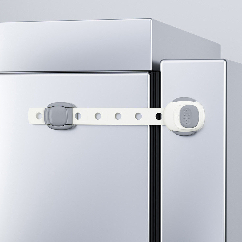 Egyszerû és biztonságos nyitómechanizmus, reteszelõ rendszerrel.A gyerekzár többek között szekrények, fiókok, vitrinek, WC-k, hûtõszekrények zárvatartására alkalmas.Minden felelõs szülõ számára gyermeke biztonsága a legfontosabb. Kiváló minõségû bútorvédõink olyan kisgyermekek számára készültek, akik aktívan felfedezik közvetlen környezetüket. Tartós, egyszerû kialakítású védõeszközeink segítségével minden gardrób, fiók és szekrény tartalma egyetlen gyermek számára sem lesz elérhetõ. Ez az univerzális és robusztus zár erõs 3M ragasztószalaggal van felszerelve, így Ön nem sérti meg a bútor felületét.• Egyszerû és biztonságos nyitási mechanizmus reteszelõ rendszerrel• A zár többek között alkalmas szekrényekhez, komódokhoz, bizonyos fiókokhoz, vitrinekhez, WC-khez, hûtõszekrényekhez• Az erõs 3M ragasztószalag nem károsítja a felületet, és különféle anyagokra rögzíthetõ, mint pl. mûanyag, fa, üveg vagy fém. Ha a zárra már nincs szükség, könnyen eltávolítható• Az állítható pánt segítségével a zárat az igényeinek megfelelõen állíthatja be• Ha a zárra már nincs szükség, könnyen eltávolítható.MEGFELELÕ AZ EN 16948 BIZTONSÁGI SZABVÁNYNAK• Méretek: 23 x 4,6 cm• Erõs 3M ragasztószalaggal rögzíthetõ• Biztonságos anyagokból készültA csomagolás 2 db zárat tartalmaz.