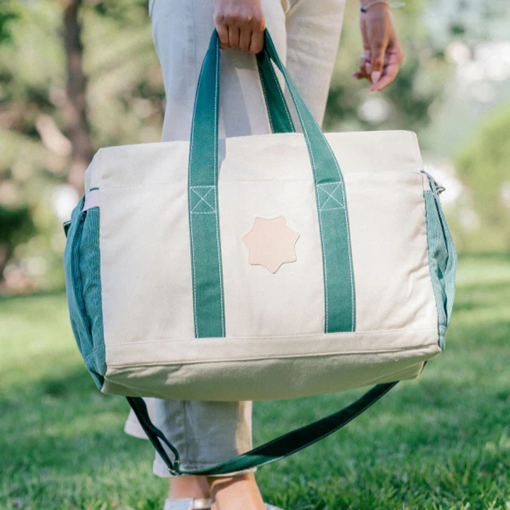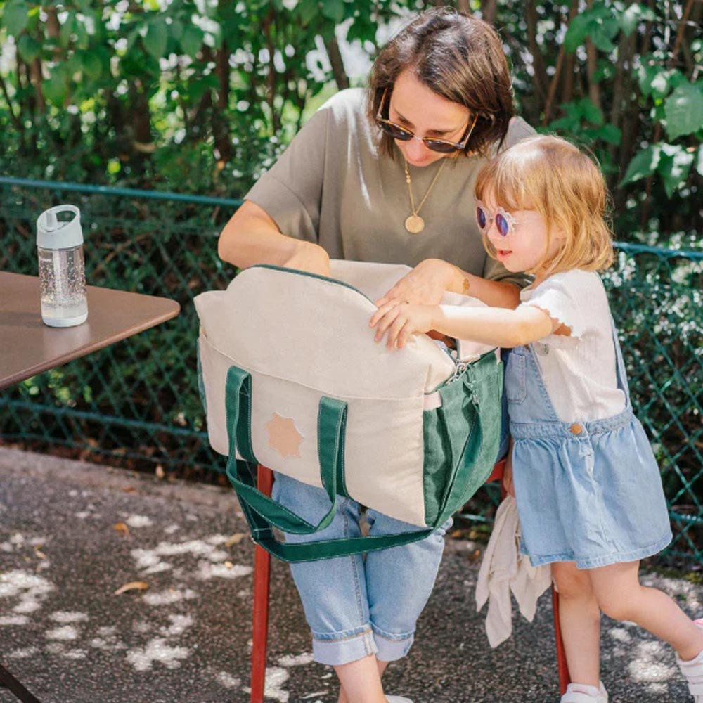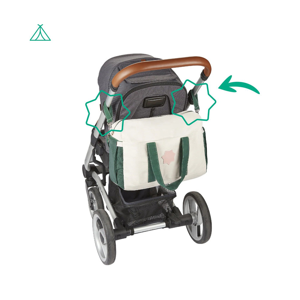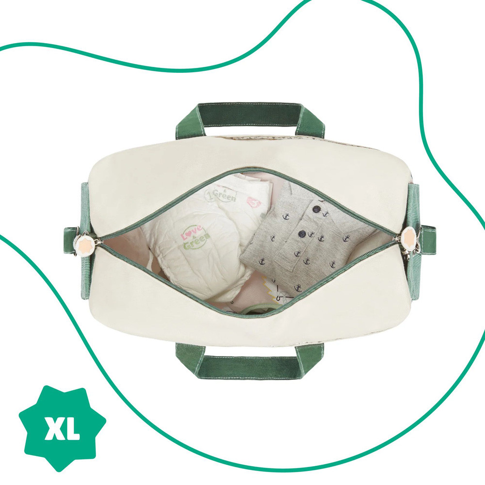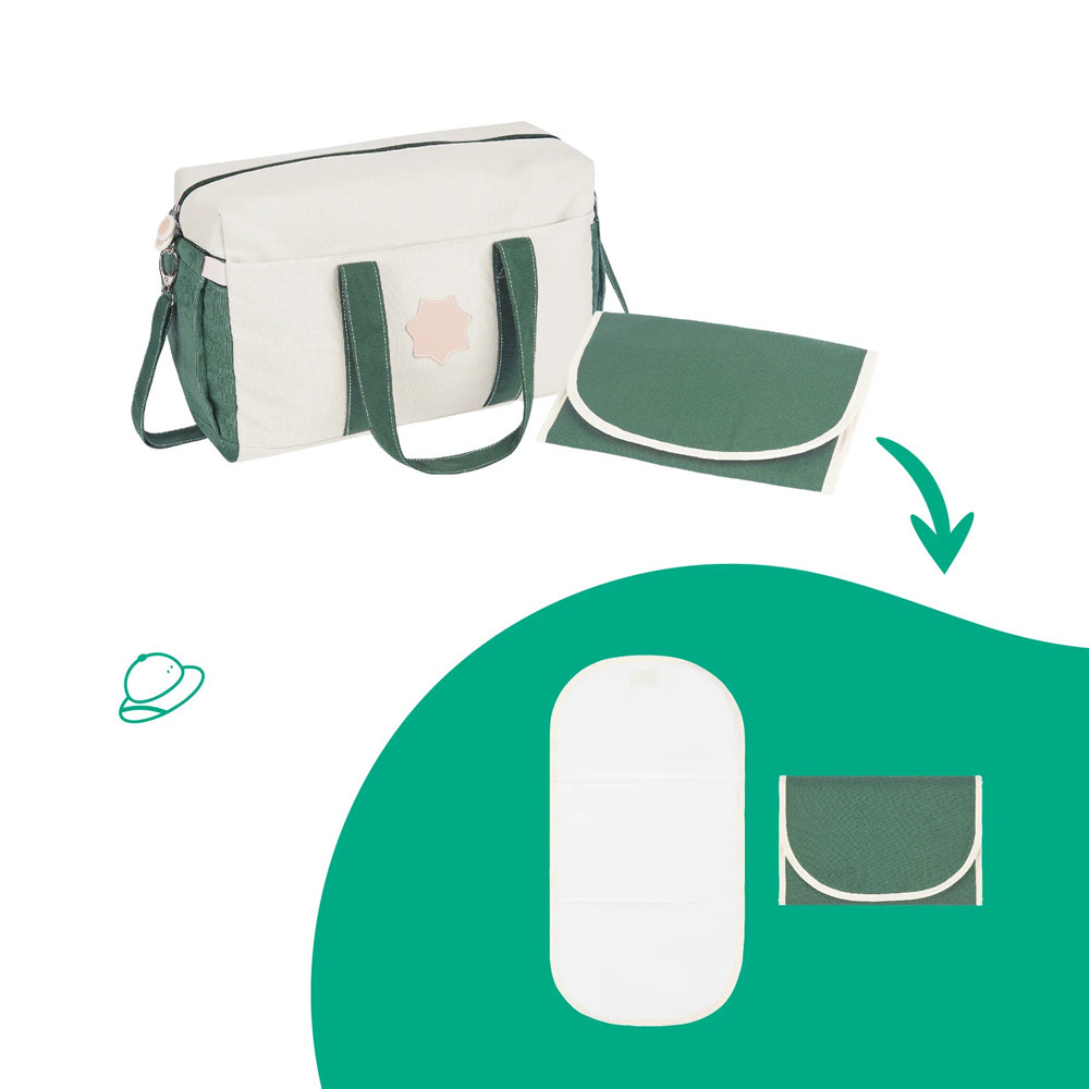 Bowling-táska stílusú szülõi pelenkázótáska kordbársony anyagból.- nagy méretû belsõ és külsõ zsebek- zöld/krém színû kordbársony és erõs pamutvászon anyagból- puha és könnyen tisztítható pelenkázólap- stílusos dizájn és színek, strapabíró anyagok a tartósság érdekében- babakocsira tehetõ- vállon, kézben és akár testen át is hordozható- ideális a sétákhozAnyaga: pamut, poliészter / pelenkázószõnyeg: pamut, poliészter, PEVAMérete: 29 x 44 x 20 cm Ápolás: A táska és a tartozékok kézzel moshatóak!Dekoráció nélkül!