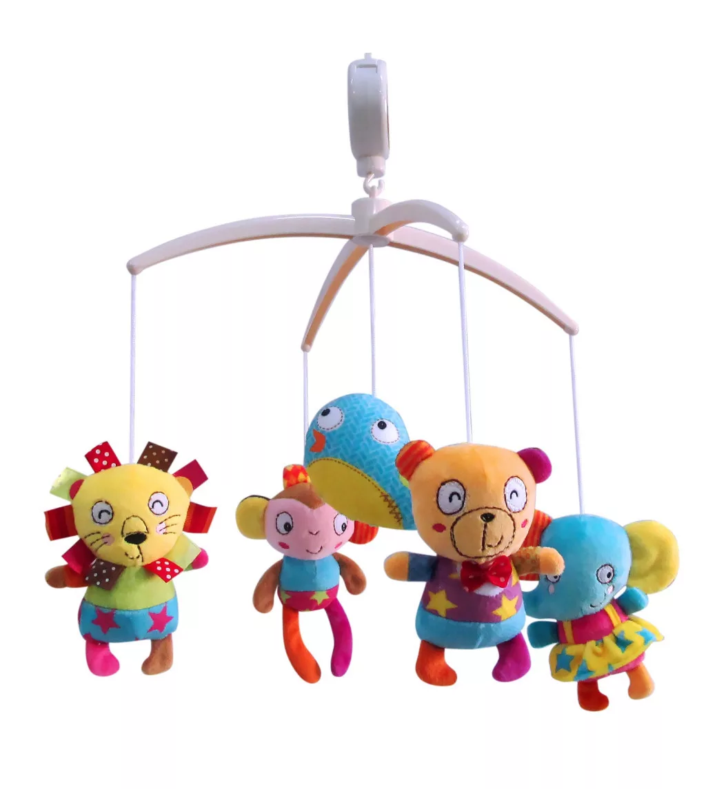A forgó színes, puha plüss figurákkal van felszerelve, amelyek:
