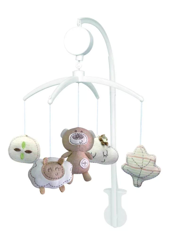 A zenélő forgó kellemes, nyugtató dallamokat játszik, miközben a plüss figurák lassan forognak a baba felett. Ez a kombináció segít: