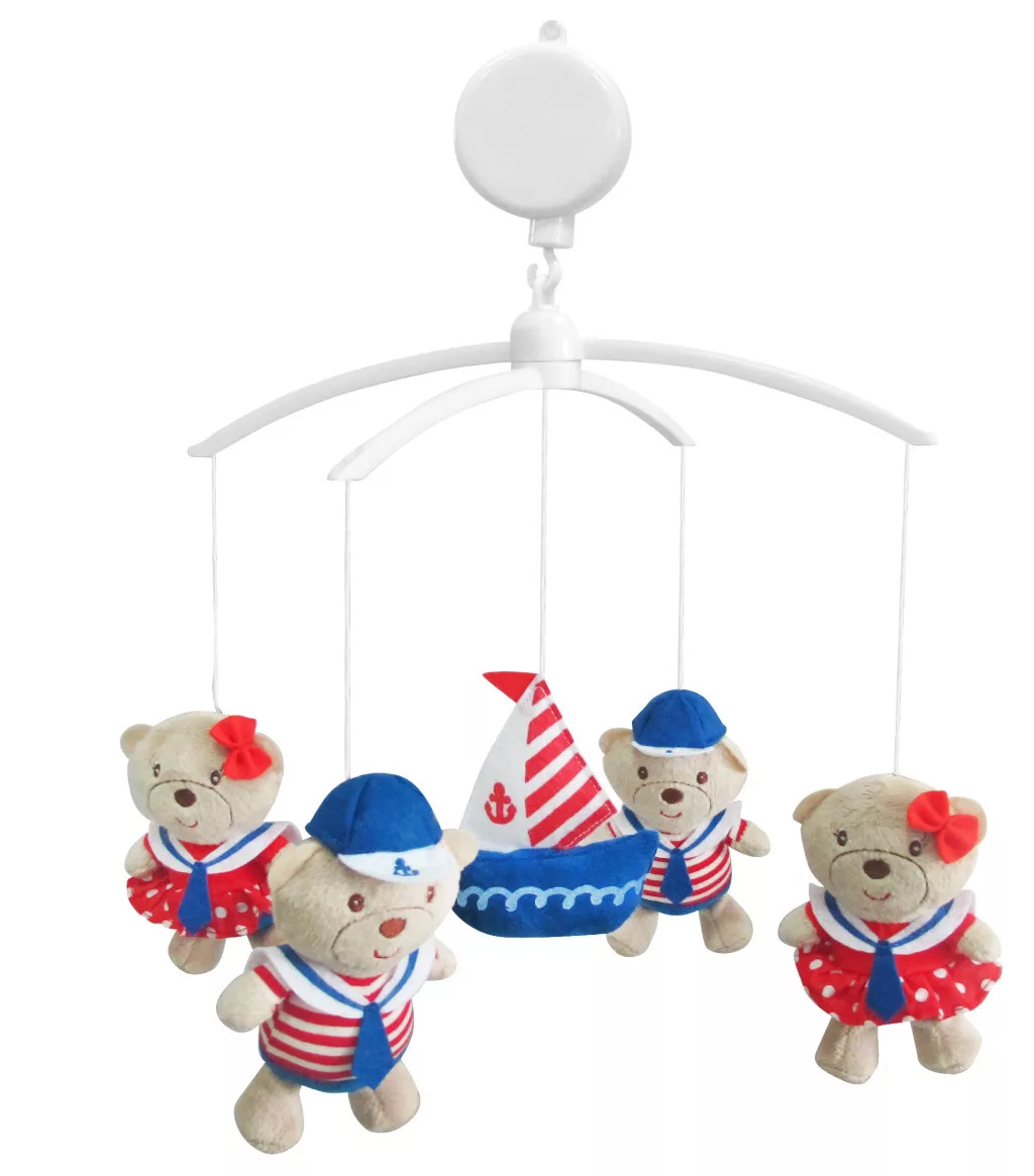 A zenélő forgó kellemes, nyugtató dallamokat játszik, miközben a plüss figurák lassan forognak a baba felett. Ez a kombináció segít: