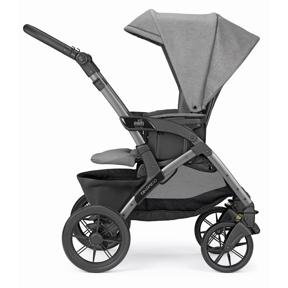 Cam Dinamico Smart Duo! Modern, igényes kivitelezésû, kiváló minõségû anyagok felhasználásával létrejött babakocsi, amely tökéletes társatok lesz a babás mindennapokban!Újszülött kortól használható, 0-4 éves korig (22 kg)Tartalma: babakocsi váz üléssel (naptetõvel), mózeskosárral (kupolával és lábtakaróval), és pelenkázótáskaMózeskosár:- Tágasabb és mélyebb mózeskosár a maximális kényelem érdekében- A gyors rá- és lecsatlakoztatást segítõ Quicky System-mel felszerelve- Csúszásmentes fogantyú innovatív egykezes rögzítõ- és kioldórendszerrel- Megemelhetõ háttámla (4 pozíció!)- Matrac- 100% pamut belsõ huzat- Lábtakaró szélvédõvel, mely a babakocsiban lábzsákként használható- Légáteresztõ alj- Ringató funkció- Nagy, trendi pelenkázótáskávalSportbabakocsi:- Alumínium váz megfordítható üléssel (szülõre nézõ 0-1 év, elõre nézõ 1-4 év)- Gyors rögzítés/kioldás Quicky System mózeskosárhoz és autósüléshez- Állítható magasságú tolókar szivacs borítással- Könnyen levehetõ nagy hátsó kerekek fém golyóscsapágyakkal- Fixálható bolygókerék elöl - Központi fék- Lágy elsõ és hátsó felfüggesztés- Egy kézzel könnyedén 4 pozícióba állítható háttámla- Állítható lábtartó- Levehetõ kapaszkodó- 5 pontos biztonsági öv- Tágas bevásárlókosár praktikus nyitórendszerrelBármely irányba felszerelt ülõrésszel kompakt méretûre csukható, mint egy könyv, és összecsukva önmagában megáll.Tartozékai:- Naptetõ- Bevásárlókosár- Lábzsák (a mózeskosárról)Kompatilbilis termékek:A Cam Dinamico Smart Duo babakocsi vázára csatlakoztatható - a Cam Area Zero (CAM hordozó Area Zero Plusz I-Size 40-75cm Dinamico és Fluido babakocsikra 761 fekete) vagy - a Cam Relax i-Size (CAM hordozó Relax I-Size 40-87cm Dinamico és Fluido babakocsikra 761 fekete) babahordozó, melyek külön megvásárolható termékek, - illetve kapható vele kompatibilis univerzális adapter, melyre több márka (pl. Maxi-Cosi, BeSafe) hordozója rögzíthetõ.Méretei:- Összecsukva (váz): 29 x 57 x 87 cm Súly: 7,5 kg- Mózeskosárral: 57 x 90,5 x 117 cm Súly: 12,4 kg- Mózeskosár belsõ méret: 83 x 36 x 22-20 cm Súly: 4.9 kg- Sportbabakocsi: 57 x 87,5 x 100 cm Súly: 10,3 kg CAM :A CAM vállalatot 1969-ben alapította 3 vállalkozó kedvû testvér. Kis családi vállalkozásból a bébiszektor egyik legfontosabb vállalatává nõtte ki magát. Sikerük abban rejlik, hogy a gyermekek szemével tekintenek a világra. Legfõbb céljuk, hogy egyszerûbbé és kényelmesebbé tegyék a családok életét termékeik segítségével. A CAM-re jellemzõek a kreatív ötletek, multifunkcionális és stílusos megjelenésû termékek, melyekkel garantálják a minõséget.Biztonság• Európai szabvány: EN1888-1/2 : 2018 A1:2022• Fékpróba: a nagyobb biztonság érdekében kötelezõ a kapcsolt fék használata• 360 forgási teszt: az 5 pontos biztonsági heveder ellenállását teszteli• Kopásvizsgálat: teszteli a babakocsi szilárdságát egy akadálypályán, szimulálva a használatot és a termék idõbeli kopását.• Véletlen összecsukás teszt: a véletlen összecsukást megakadályozó kettõs biztonsági mechanizmust teszteli• Nem mérgezõ (EN71) és ftalátmentes anyagok (2005/84/CE irányelv)• Tartóssági teszt egyenetlen utakon. Az európai szabályozás elõírja, hogy a tesztet 72 000 körön kell elvégezni, a Cam 500 000 körön végzi el a tesztet• A tolókar és a felfüggesztés tartóssági tesztje. Az európai szabályozás elõírja, hogy a tesztet 10 000 körön kell elvégezni, a Cam 30 000 körön végzi el a tesztet