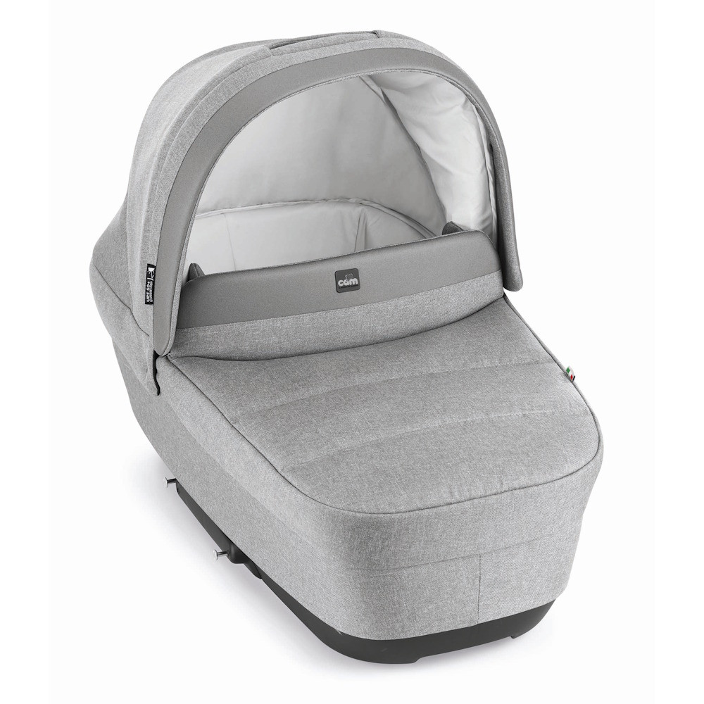 Cam Dinamico Smart Duo! Modern, igényes kivitelezésû, kiváló minõségû anyagok felhasználásával létrejött babakocsi, amely tökéletes társatok lesz a babás mindennapokban!Újszülött kortól használható, 0-4 éves korig (22 kg)Tartalma: babakocsi váz üléssel (naptetõvel), mózeskosárral (kupolával és lábtakaróval), és pelenkázótáskaMózeskosár:- Tágasabb és mélyebb mózeskosár a maximális kényelem érdekében- A gyors rá- és lecsatlakoztatást segítõ Quicky System-mel felszerelve- Csúszásmentes fogantyú innovatív egykezes rögzítõ- és kioldórendszerrel- Megemelhetõ háttámla (4 pozíció!)- Matrac- 100% pamut belsõ huzat- Lábtakaró szélvédõvel, mely a babakocsiban lábzsákként használható- Légáteresztõ alj- Ringató funkció- Nagy, trendi pelenkázótáskávalSportbabakocsi:- Alumínium váz megfordítható üléssel (szülõre nézõ 0-1 év, elõre nézõ 1-4 év)- Gyors rögzítés/kioldás Quicky System mózeskosárhoz és autósüléshez- Állítható magasságú tolókar szivacs borítással- Könnyen levehetõ nagy hátsó kerekek fém golyóscsapágyakkal- Fixálható bolygókerék elöl - Központi fék- Lágy elsõ és hátsó felfüggesztés- Egy kézzel könnyedén 4 pozícióba állítható háttámla- Állítható lábtartó- Levehetõ kapaszkodó- 5 pontos biztonsági öv- Tágas bevásárlókosár praktikus nyitórendszerrelBármely irányba felszerelt ülõrésszel kompakt méretûre csukható, mint egy könyv, és összecsukva önmagában megáll.Tartozékai:- Naptetõ- Bevásárlókosár- Lábzsák (a mózeskosárról)Kompatilbilis termékek:A Cam Dinamico Smart Duo babakocsi vázára csatlakoztatható - a Cam Area Zero (CAM hordozó Area Zero Plusz I-Size 40-75cm Dinamico és Fluido babakocsikra 761 fekete) vagy - a Cam Relax i-Size (CAM hordozó Relax I-Size 40-87cm Dinamico és Fluido babakocsikra 761 fekete) babahordozó, melyek külön megvásárolható termékek, - illetve kapható vele kompatibilis univerzális adapter, melyre több márka (pl. Maxi-Cosi, BeSafe) hordozója rögzíthetõ.Méretei:- Összecsukva (váz): 29 x 57 x 87 cm Súly: 7,5 kg- Mózeskosárral: 57 x 90,5 x 117 cm Súly: 12,4 kg- Mózeskosár belsõ méret: 83 x 36 x 22-20 cm Súly: 4.9 kg- Sportbabakocsi: 57 x 87,5 x 100 cm Súly: 10,3 kg CAM :A CAM vállalatot 1969-ben alapította 3 vállalkozó kedvû testvér. Kis családi vállalkozásból a bébiszektor egyik legfontosabb vállalatává nõtte ki magát. Sikerük abban rejlik, hogy a gyermekek szemével tekintenek a világra. Legfõbb céljuk, hogy egyszerûbbé és kényelmesebbé tegyék a családok életét termékeik segítségével. A CAM-re jellemzõek a kreatív ötletek, multifunkcionális és stílusos megjelenésû termékek, melyekkel garantálják a minõséget.Biztonság• Európai szabvány: EN1888-1/2 : 2018 A1:2022• Fékpróba: a nagyobb biztonság érdekében kötelezõ a kapcsolt fék használata• 360 forgási teszt: az 5 pontos biztonsági heveder ellenállását teszteli• Kopásvizsgálat: teszteli a babakocsi szilárdságát egy akadálypályán, szimulálva a használatot és a termék idõbeli kopását.• Véletlen összecsukás teszt: a véletlen összecsukást megakadályozó kettõs biztonsági mechanizmust teszteli• Nem mérgezõ (EN71) és ftalátmentes anyagok (2005/84/CE irányelv)• Tartóssági teszt egyenetlen utakon. Az európai szabályozás elõírja, hogy a tesztet 72 000 körön kell elvégezni, a Cam 500 000 körön végzi el a tesztet• A tolókar és a felfüggesztés tartóssági tesztje. Az európai szabályozás elõírja, hogy a tesztet 10 000 körön kell elvégezni, a Cam 30 000 körön végzi el a tesztet
