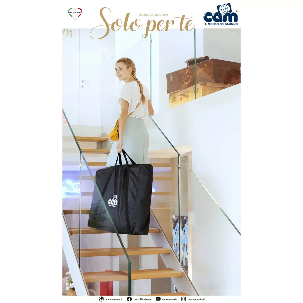 Cam Sempreconte összecsukható babaágy és ágyhoz rögzíthetõ babaöböl- 8 magasságba állítható babaágy,- egyik oldala leengedhetõ az “együtt alvó” pozícióhoz,- anti-reflux pozícióba állítható.- 4 fékezhetõ bolygókerék- hevederek a felnõtt ágyhoz rögzítéshez- körben mintás háló az oldalfal- ágynemûszett (csak a 159-es és a 160-as színek tartozéka!)Tartalma: fém váz, puha matrac, puha anyagú huzat hálós oldalfalakkal és ágynemûszett (párnahuzat, paplanhuzat, paplan, lepedõ).Levehetõ és kézzel, maximum 30°C-on mosható anyagok.Ajánlott: 9 kilogrammnál könnyebb babák számára.Kinyitva: 105 cm hosszú – 59 cm széles – 82/134 cm magas.Csukva: 105 cm hosszú – 59 cm széles – 15 cm magas.Súlya: 10 kg.Videó a termékrõl:https://youtu.be/yUfttN1kw4Y