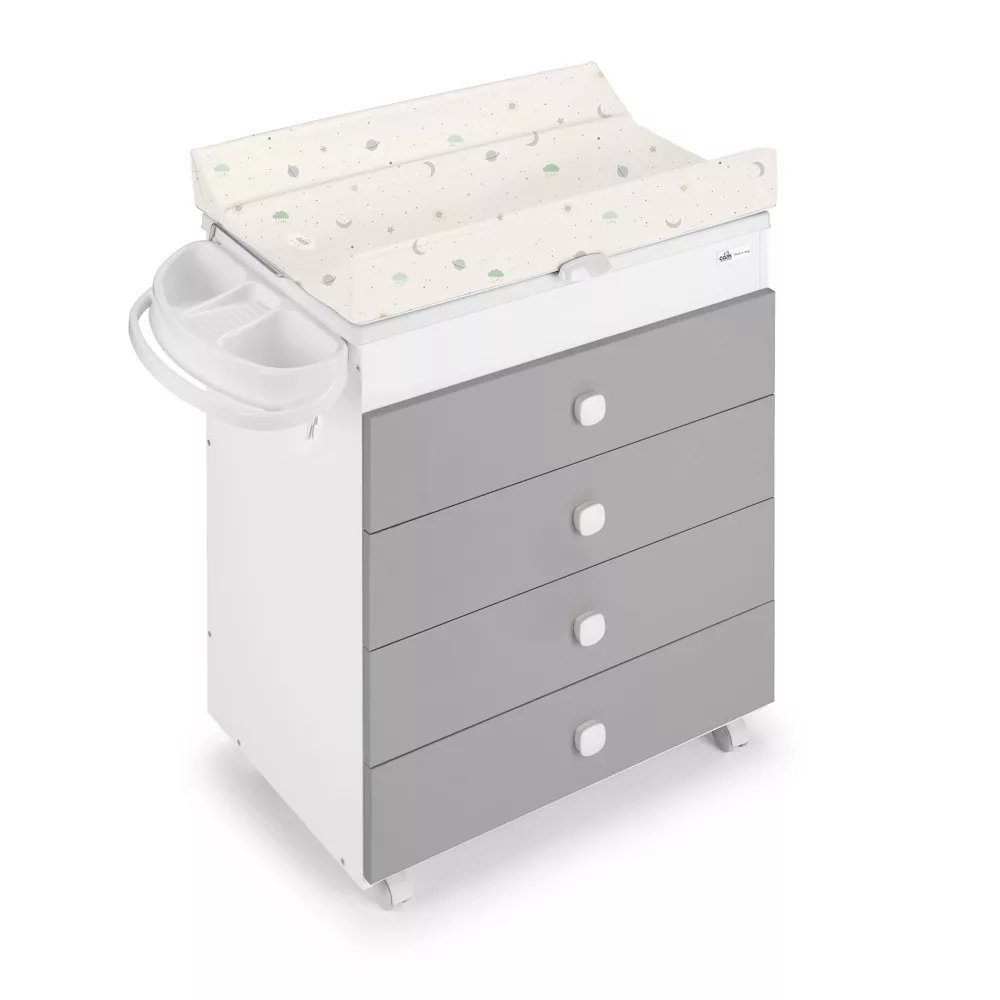 - egy kézzel is könnyen felhajtható merev aljú, puha pelenkázólap leesésgátló oldalakkal