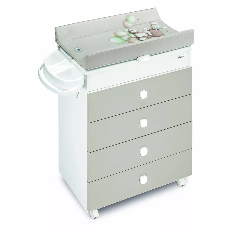 Többfunkciós fürdetõ és pelenkázó szekrény fiókokkalOlaszországban készült- újszülött kortól használható- egy kézzel is könnyen felhajtható merev aljú, puha pelenkázólap leesésgátló oldalakkal- része a babakád két anatómiailag formázott üléssel: egyik ülés döntött, a 0-6 hónapos babák fektetve fürdetéséhez és a másik ülés karfás, a 6-12 hónapos babák ültetve fürdetéséhez- szappan-, szivacs- és törölkõzõtartók– fürdõvíz-leeresztõ csõvel és dugóval– 4 görgõvel, melyekbõl 2 fékezhetõ– fürdetõszekrény formájában 3 teljes értékû fiókkal– normál, 4 fiókos komóddá alakítható a tetejére tehetõ fa lappal- a fiókok fém sínekben siklanakMaximum terhelhetõsége: 11 kgMéretei: komód káddal és pelenkázólappal: 93x47x100,5 cm komód: 76x47x89 cmSúlya: 44kgBiztonság: - Európai szabvány: EN12221-1/2- Korosztály:Ideális kisbabáknak a 11 kg-os súly eléréséig- Oldalsó, elsõ és hátsó stabilitási teszten ment át, elkerülendõ azt a veszélyt, hogy a termék felboruljon használat közben- Nincs benne mérgezõ anyag (EN71 szabvány) és ftalátmentes anyagokból készült (2005/84/CE irányelv)