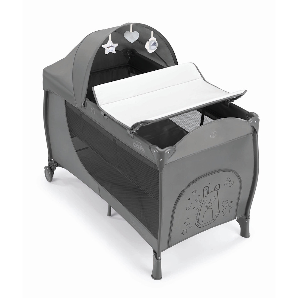 A Cam utazóágy 0-36 hónapos gyermekek számára ajánlott. Tökéletes alvóhely és játékkuckó lehet minden csöppség részére.Tulajdonságai:- Magasságállító szett a kisbabáknak- Naptetõ levehetõ játékokkal- Vidám nyomott minta az oldalakon- Cipzáras oldalajtó- Kompakt méretûre csukhatóTartozékai:- Szúnyogháló- Nagy zseb- 2 fékezhetõ kerék- Fekvõbetét- Hordozótáska- PelenkázólapMéretei:- Kinyitva: 71cm széles, 127,5cm hosszú, 109cm magas- Összecsukva: 18cm széles, 18cm hosszú, 75,5cm magasSúlya: 14 kg