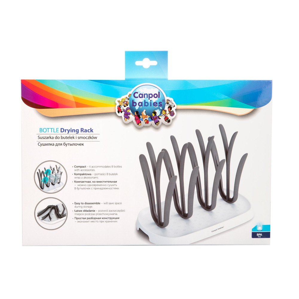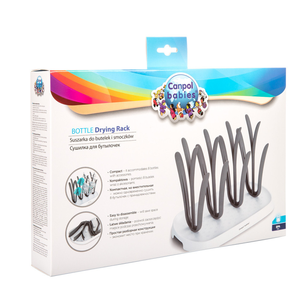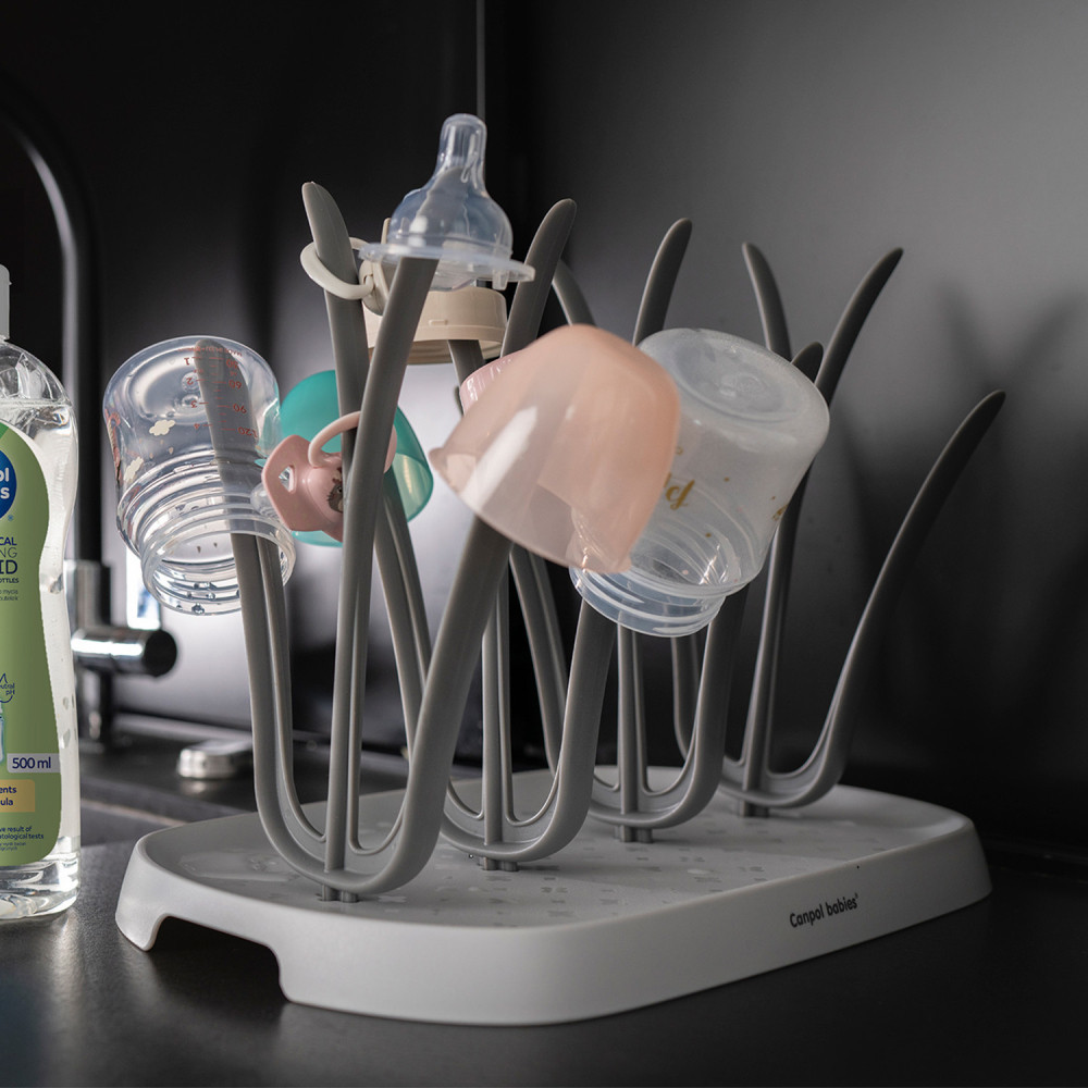 Mosogatógépben mosható. Helyezze a mosott cumisüvegeket, cumikat és egyéb kiegészítőket az állványra a képen látható módon.