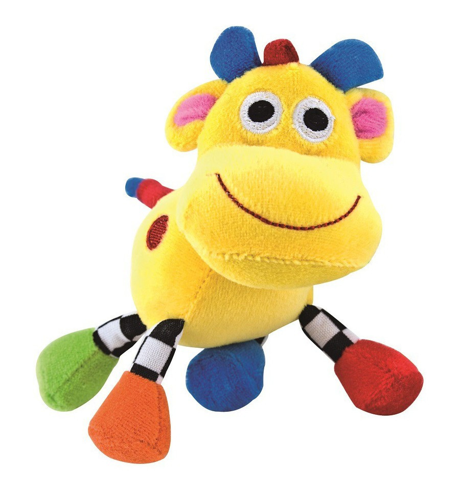 A színes csörgő részek buzdítják a kisgyermeket a játékra és segítik a látási és mozgási képességek serkentését.