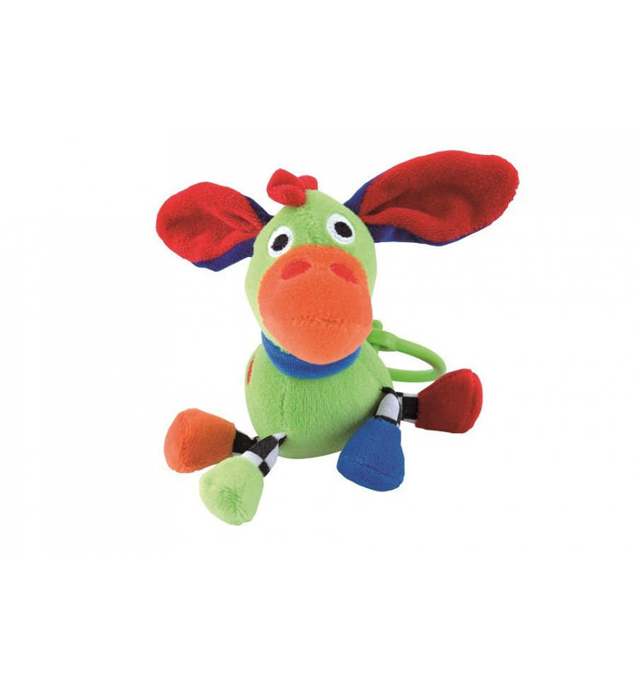 A felakasztható plüss csörgő és rágóka puha részeket tartalmaz, amelyek segítik a nyugtatni a fájó ínyt az első fogacskacskák kibújásánál.