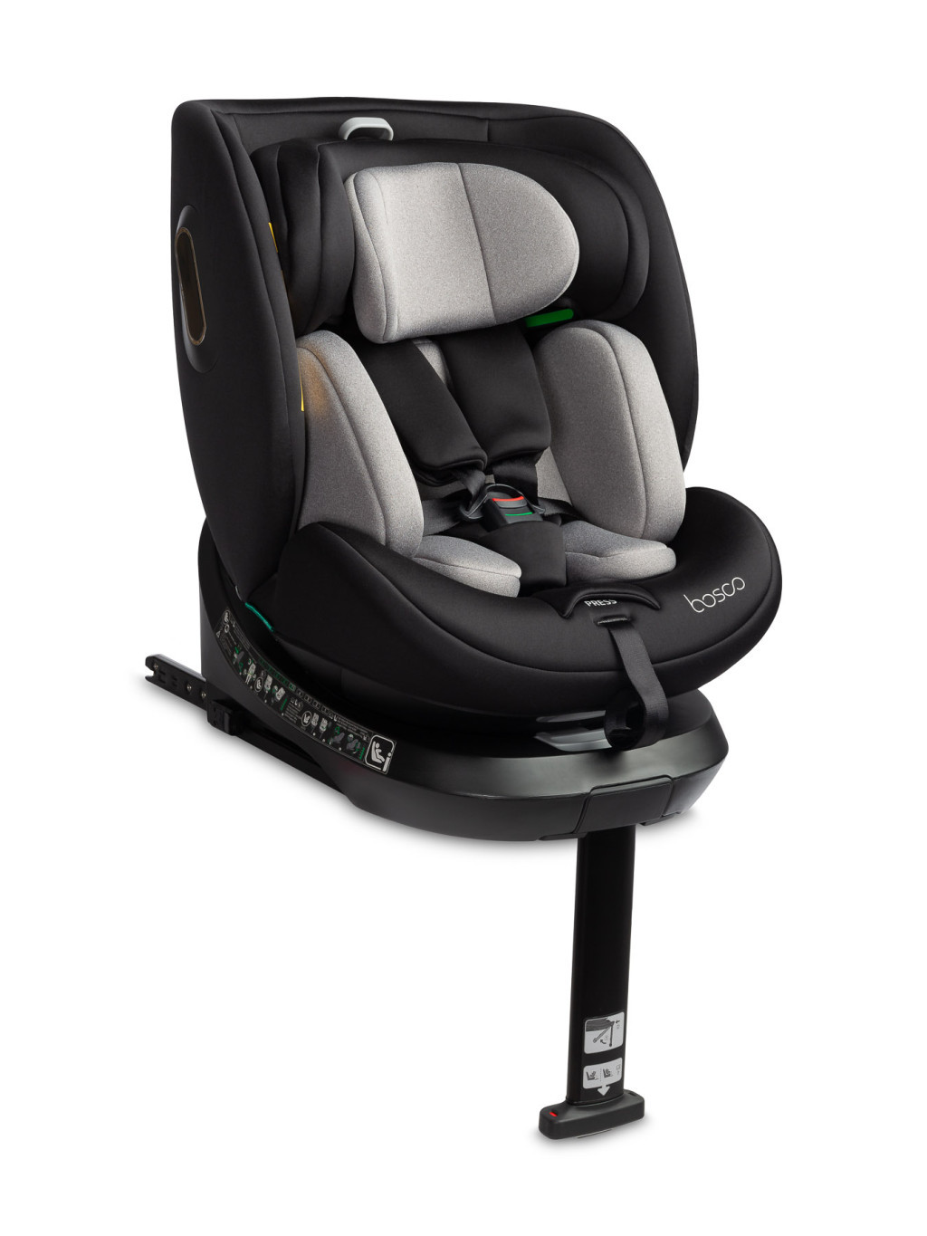 A biztonságos ISOFIX rendszer és a stabilizáló támasztóláb kombinációja gyors, hibamentes és biztonságos rögzítést garantál az autóban. A Bosco modell telepítése így egyszerű és időtakarékos.