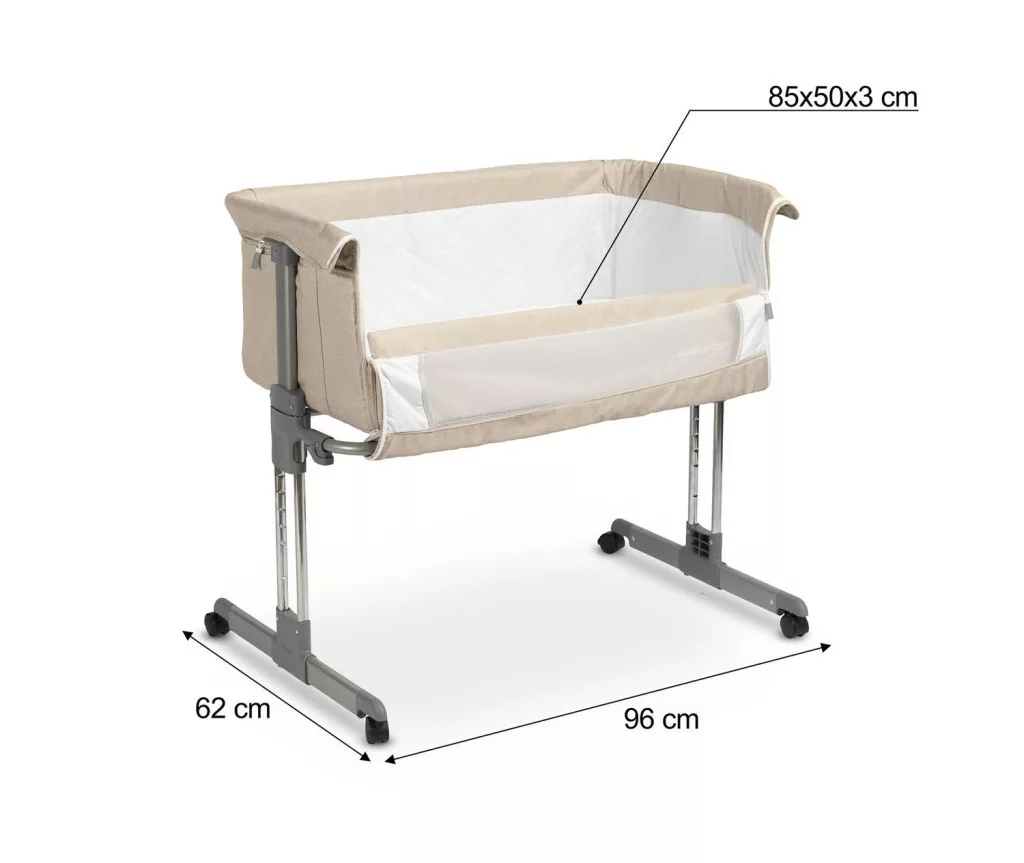 Sleep2gether 2 az 1-ben babaágy tökéletes megoldás újszülöttek számára. Használható önálló kiságyként vagy a szülői ágyhoz csatlakoztatva co-sleeperként, így a baba mindig biztonságban és közel lehet. A kiságy 7 fokozatban állítható magassággal rendelkezik, dönthető fekvőfelülete pedig segíti a baba légzését megfázás és reflux esetén. A könnyű, stabil alumínium váz, a beépített kerekek és a puha habmatrac mind hozzájárulnak a maximális kényelemhez. A stílusos megjelenés és a könnyen tisztítható anyagok miatt ideális választás minden modern szülőnek. Tartozék rögzítőpántokkal, oldalzsebbel