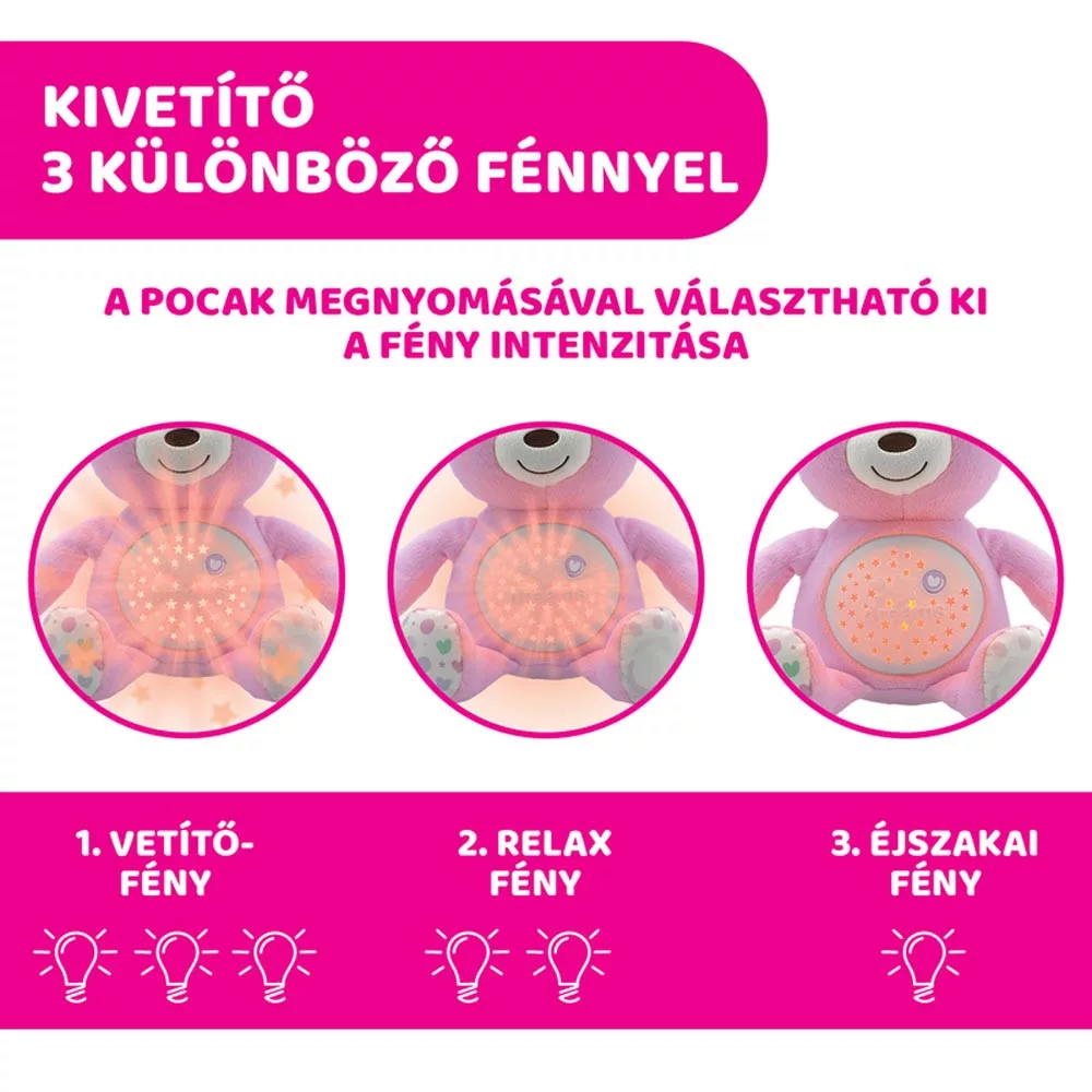 Chicco Baby Bear plüss maci projektorvetítö és éjszakai lámpa rózsaszín