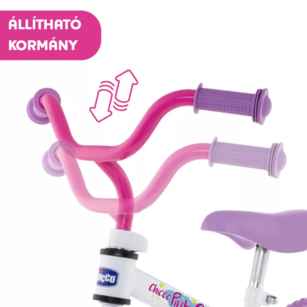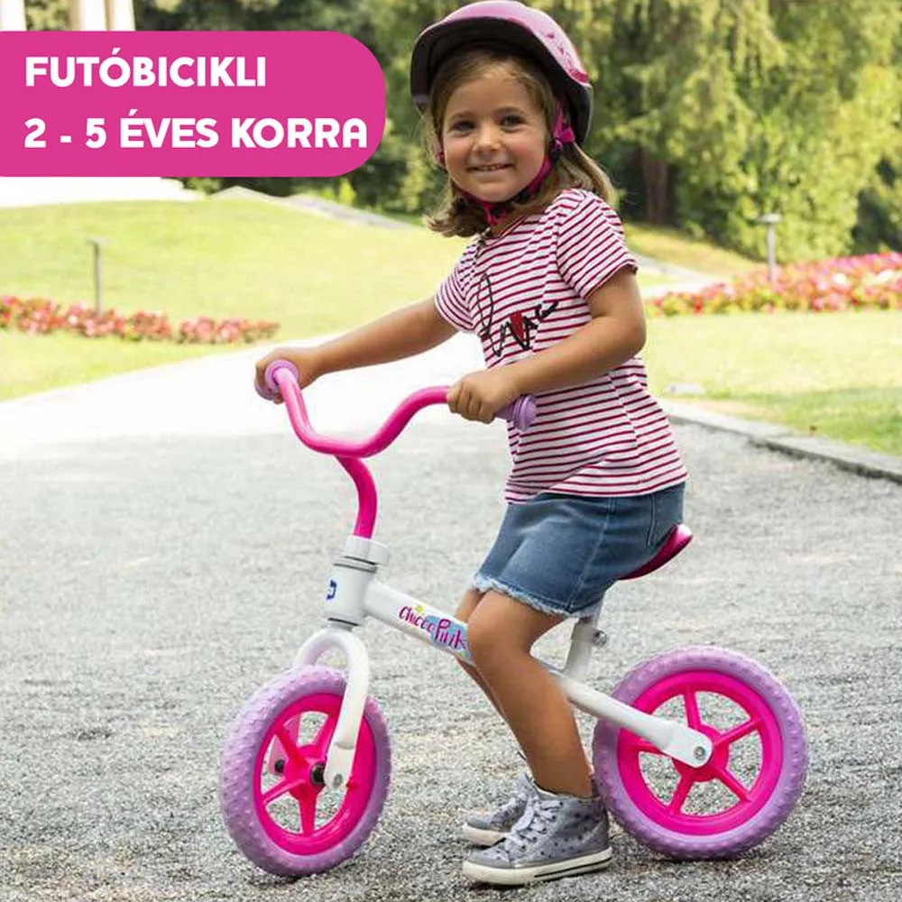 A gyerek elsõ ultrakönnyû kerékpárja!Fémvázas Chicco futóbicikli, 2-5 éves korra, illetve max. 25 kg testsúlyig.A Chicco Balance Bike lábbal hajtós futókerékpár ideális a gyermek elsõ biciklijeként. Segít a gyermeknek megfelelõ gyorsasággal két keréken biciklizni. A gyermek problémamentesen és félelem nélkül tud majd a késõbbiekben egy pedálos kerékpárra ráülni. állítható kormánymagasság állítható ülésmagasság ultrakönnyû fém váz tömör, rugalmas habtöltetû kerekek a kerekek lyukadásmentesek és nem kell felfújni Kerék méret: 25 cm átmérõ (kerékgumival együtt)Termékméret: 46 x 56 x 68 cm. Dobozméret: 60 x 26 x 17 cm.