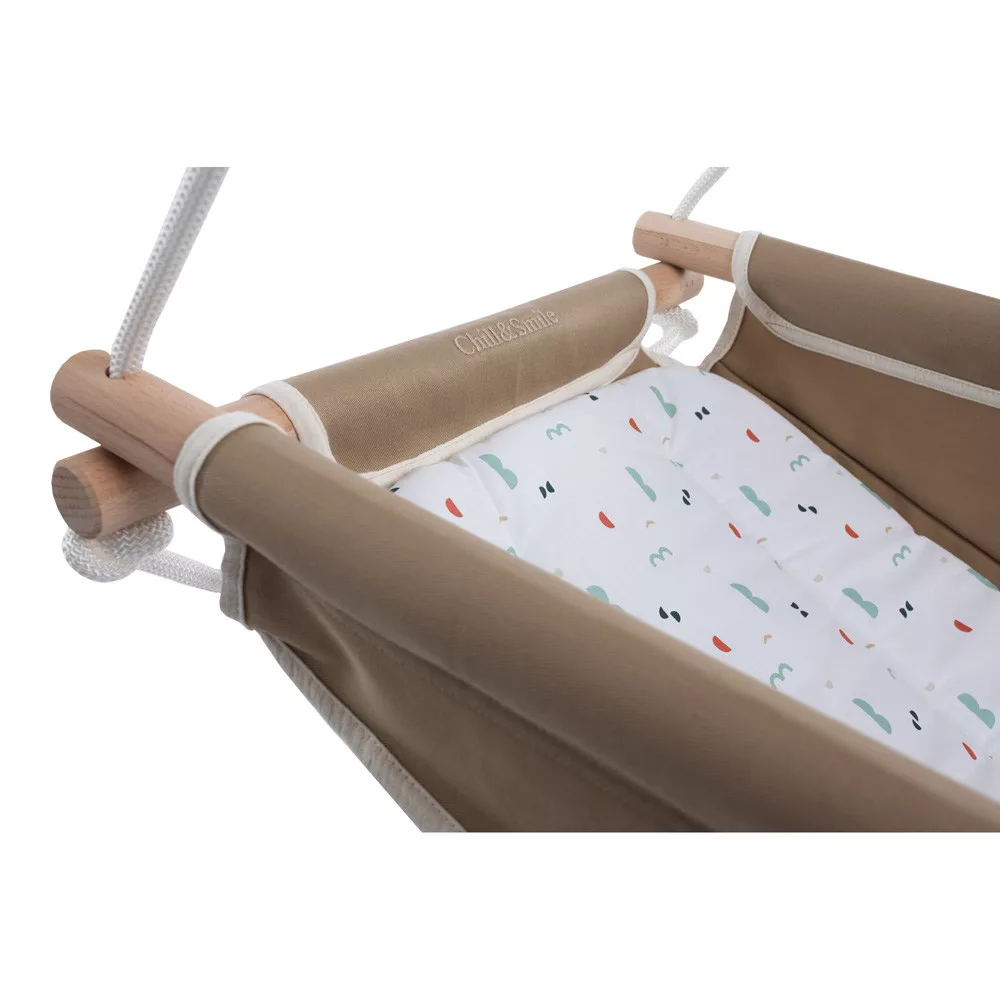 Chill&Smile klasszikus babahinta – Természetes Kényelem és Biztonság A hintázás nemcsak játék, hanem a fejlõdés része is. A mozgás koordinációja, az egyensúlyérzék ésa térbeli tájékozódás mind javulnak, miközben a gyerekek örömmel hintáznak. A szülõk számára pedig a hintázás lehetõséget ad arra, hogy egy pillanatra megálljanak, és élvezzék a gyermekükboldogságát. Minden egyes hinta gondosan lett megtervezve, hogy a baba és a szülõk számára is örömteli és pihentetõ élményt nyújtson. Az otthon melege, a természetesség és a szeretet mindmegjelennek ezekben a hintákban, amelyek acsaládi pillanatok különleges részévé válnak.A hinták nevei szorosan kapcsolódnak a szülõi szeretethez és gyengédséghez. Minden egyes név egy becézés, amit sok szülõ használ gyermeke számára. Ezek az elnevezések - mint Virágszál, Kincsem, Bogyó, Csillagom és Manó - azt a szeretetet és törõdést tükrözik, amit a szülõk éreznek gyermekeik iránt. A hinták is ezt az érzést hivatottak megtestesíteni: kényelmet, biztonságotés a szeretet ölelését nyújtják a legkisebbek számára.A klasszikus babahinta a tökéletes választás azoknak a szülõknek, akik természetes anyagokból készült, biztonságos és kényelmes hintát keresnek gyermekük számára. Ideális újszülött kortól akár 3 éves korig, segít megnyugtatni és szórakoztatni a babát. Fõbb jellemzõk: 1.Kényelmes és ergonomikus kialakítás A babahinta puha, légáteresztõ pamutból készült, amely biztosítja a baba kényelmét és támogatja az egészséges testtartást. A hintázó mozgás nyugtató hatású, segíti az altatást és hozzájárul a baba egyensúlyérzékének fejlõdéséhez. 2.Biztonság mindenek felett A biztonsági öv gondoskodik arról, hogy a baba biztonságosan helyezkedjen el a hintában. Az erõs, strapabíró fa keret és a megbízható rögzítési rendszer stabil használatot garantál. 3.Könnyû használat és hordozhatóság A babahinta egyszerûen felszerelhetõ beltéren és kültéren egyaránt. Kompakt méretének és könnyû szerkezetének köszönhetõen könnyen mozgatható, így bárhová magaddal viheted, hogy gyermeked mindig otthon érezhesse magát. 4.Természetes anyagok A természetes pamut és fenntartható forrásból származó fa alkatrészek biztosítják, hogy a babahinta környezetbarát és bababarát legyen. Mûszaki adatok: - Ajánlott életkor: 0-3 év - Terhelhetõség: max. 15 kg - Anyagok: 100% pamut huzat, természetes fa - Tartozékok: biztonsági öv, állítható magasságú kötélzet, hintapárnaRendeld meg most, és ajándékozd meg gyermekedet a hintázás örömével!Klasszikus Babahinta – egyszerûség, amely sosem megy ki a divatból.