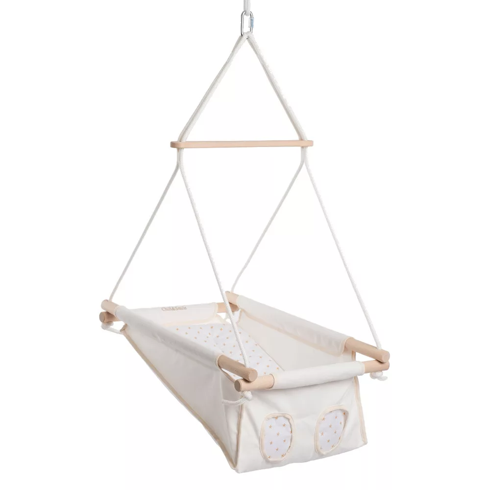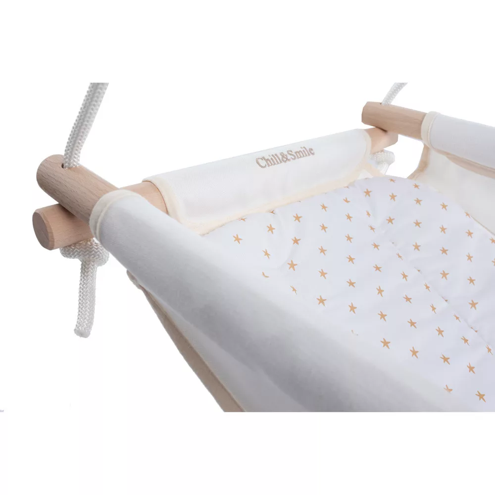Chill&Smile klasszikus babahinta – Természetes Kényelem és Biztonság A hintázás nemcsak játék, hanem a fejlõdés része is. A mozgás koordinációja, az egyensúlyérzék ésa térbeli tájékozódás mind javulnak, miközben a gyerekek örömmel hintáznak. A szülõk számára pedig a hintázás lehetõséget ad arra, hogy egy pillanatra megálljanak, és élvezzék a gyermekükboldogságát. Minden egyes hinta gondosan lett megtervezve, hogy a baba és a szülõk számára is örömteli és pihentetõ élményt nyújtson. Az otthon melege, a természetesség és a szeretet mindmegjelennek ezekben a hintákban, amelyek acsaládi pillanatok különleges részévé válnak.A hinták nevei szorosan kapcsolódnak a szülõi szeretethez és gyengédséghez. Minden egyes név egy becézés, amit sok szülõ használ gyermeke számára. Ezek az elnevezések - mint Virágszál, Kincsem, Bogyó, Csillagom és Manó - azt a szeretetet és törõdést tükrözik, amit a szülõk éreznek gyermekeik iránt. A hinták is ezt az érzést hivatottak megtestesíteni: kényelmet, biztonságotés a szeretet ölelését nyújtják a legkisebbek számára.A klasszikus babahinta a tökéletes választás azoknak a szülõknek, akik természetes anyagokból készült, biztonságos és kényelmes hintát keresnek gyermekük számára. Ideális újszülött kortól akár 3 éves korig, segít megnyugtatni és szórakoztatni a babát. Fõbb jellemzõk: 1.Kényelmes és ergonomikus kialakítás A babahinta puha, légáteresztõ pamutból készült, amely biztosítja a baba kényelmét és támogatja az egészséges testtartást. A hintázó mozgás nyugtató hatású, segíti az altatást és hozzájárul a baba egyensúlyérzékének fejlõdéséhez. 2.Biztonság mindenek felett A biztonsági öv gondoskodik arról, hogy a baba biztonságosan helyezkedjen el a hintában. Az erõs, strapabíró fa keret és a megbízható rögzítési rendszer stabil használatot garantál. 3.Könnyû használat és hordozhatóság A babahinta egyszerûen felszerelhetõ beltéren és kültéren egyaránt. Kompakt méretének és könnyû szerkezetének köszönhetõen könnyen mozgatható, így bárhová magaddal viheted, hogy gyermeked mindig otthon érezhesse magát. 4.Természetes anyagok A természetes pamut és fenntartható forrásból származó fa alkatrészek biztosítják, hogy a babahinta környezetbarát és bababarát legyen. Mûszaki adatok: - Ajánlott életkor: 0-3 év - Terhelhetõség: max. 15 kg - Anyagok: 100% pamut huzat, természetes fa - Tartozékok: biztonsági öv, állítható magasságú kötélzet, hintapárnaRendeld meg most, és ajándékozd meg gyermekedet a hintázás örömével!Klasszikus Babahinta – egyszerûség, amely sosem megy ki a divatból.