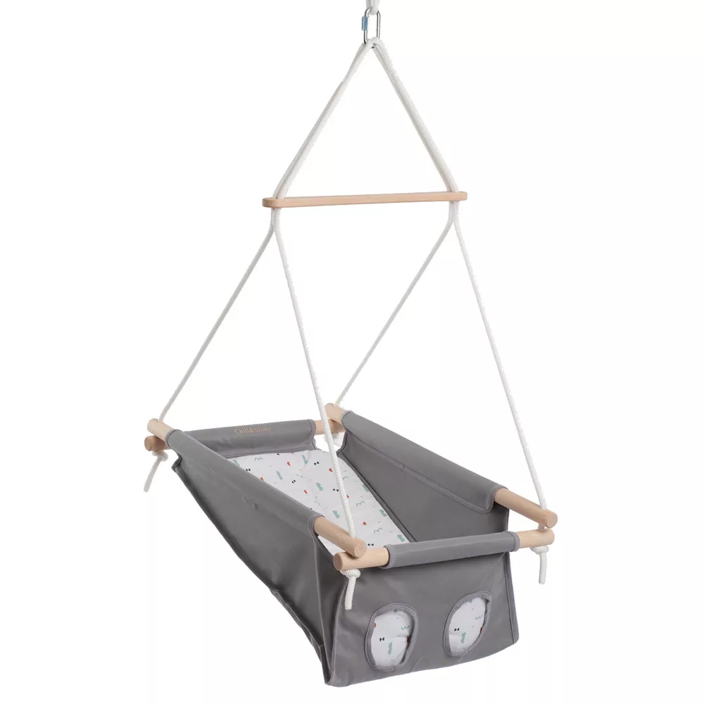Chill&Smile klasszikus babahinta – Természetes Kényelem és Biztonság A hintázás nemcsak játék, hanem a fejlõdés része is. A mozgás koordinációja, az egyensúlyérzék ésa térbeli tájékozódás mind javulnak, miközben a gyerekek örömmel hintáznak. A szülõk számára pedig a hintázás lehetõséget ad arra, hogy egy pillanatra megálljanak, és élvezzék a gyermekükboldogságát. Minden egyes hinta gondosan lett megtervezve, hogy a baba és a szülõk számára is örömteli és pihentetõ élményt nyújtson. Az otthon melege, a természetesség és a szeretet mindmegjelennek ezekben a hintákban, amelyek acsaládi pillanatok különleges részévé válnak.A hinták nevei szorosan kapcsolódnak a szülõi szeretethez és gyengédséghez. Minden egyes név egy becézés, amit sok szülõ használ gyermeke számára. Ezek az elnevezések - mint Virágszál, Kincsem, Bogyó, Csillagom és Manó - azt a szeretetet és törõdést tükrözik, amit a szülõk éreznek gyermekeik iránt. A hinták is ezt az érzést hivatottak megtestesíteni: kényelmet, biztonságotés a szeretet ölelését nyújtják a legkisebbek számára.A klasszikus babahinta a tökéletes választás azoknak a szülõknek, akik természetes anyagokból készült, biztonságos és kényelmes hintát keresnek gyermekük számára. Ideális újszülött kortól akár 3 éves korig, segít megnyugtatni és szórakoztatni a babát. Fõbb jellemzõk: 1.Kényelmes és ergonomikus kialakítás A babahinta puha, légáteresztõ pamutból készült, amely biztosítja a baba kényelmét és támogatja az egészséges testtartást. A hintázó mozgás nyugtató hatású, segíti az altatást és hozzájárul a baba egyensúlyérzékének fejlõdéséhez. 2.Biztonság mindenek felett A biztonsági öv gondoskodik arról, hogy a baba biztonságosan helyezkedjen el a hintában. Az erõs, strapabíró fa keret és a megbízható rögzítési rendszer stabil használatot garantál. 3.Könnyû használat és hordozhatóság A babahinta egyszerûen felszerelhetõ beltéren és kültéren egyaránt. Kompakt méretének és könnyû szerkezetének köszönhetõen könnyen mozgatható, így bárhová magaddal viheted, hogy gyermeked mindig otthon érezhesse magát. 4.Természetes anyagok A természetes pamut és fenntartható forrásból származó fa alkatrészek biztosítják, hogy a babahinta környezetbarát és bababarát legyen. Mûszaki adatok: - Ajánlott életkor: 0-3 év - Terhelhetõség: max. 15 kg - Anyagok: 100% pamut huzat, természetes fa - Tartozékok: biztonsági öv, állítható magasságú kötélzet, hintapárnaRendeld meg most, és ajándékozd meg gyermekedet a hintázás örömével!Klasszikus Babahinta – egyszerûség, amely sosem megy ki a divatból.