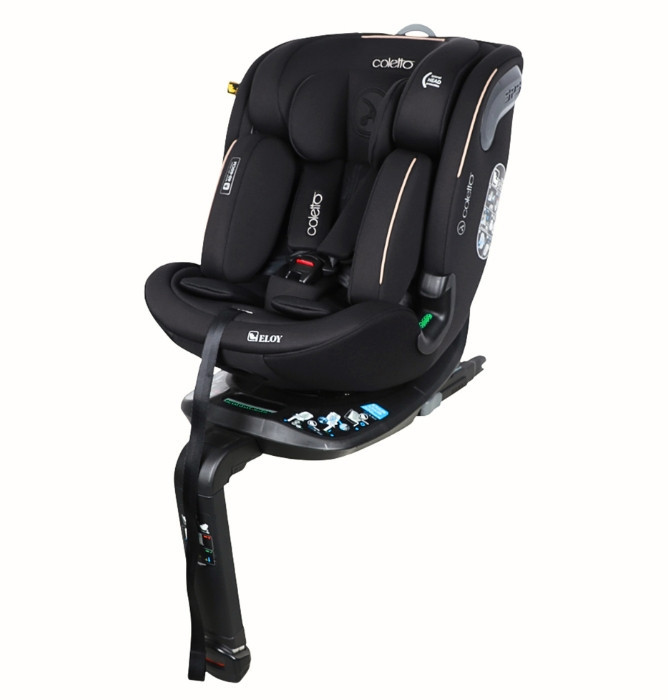 A Coletto Eloy I-Size autósülés újszülött kortól 12 éves korig kíséri gyermekedet. A 360°-ban forgatható ülés ISOFIX rendszerrel és felső rögzítő hevederrel biztosít maximális védelmet és kényelmet. A fokozatmentesen állítható fejtámla, a kivehető szűkítő betét és a jól szellőző ülés garantálja a komfortos utazást minden életkorban.