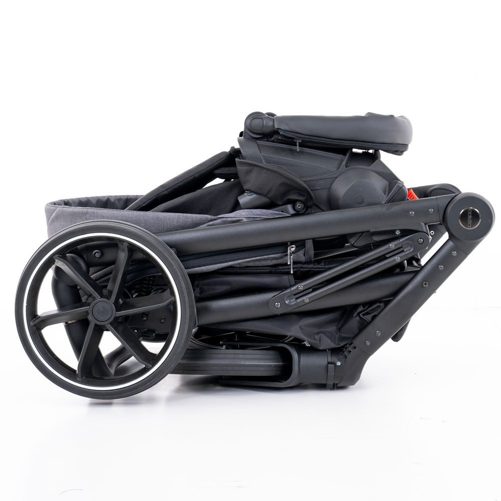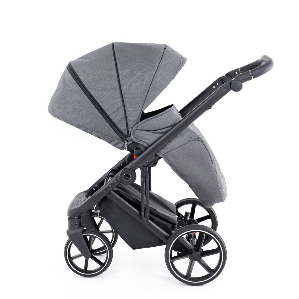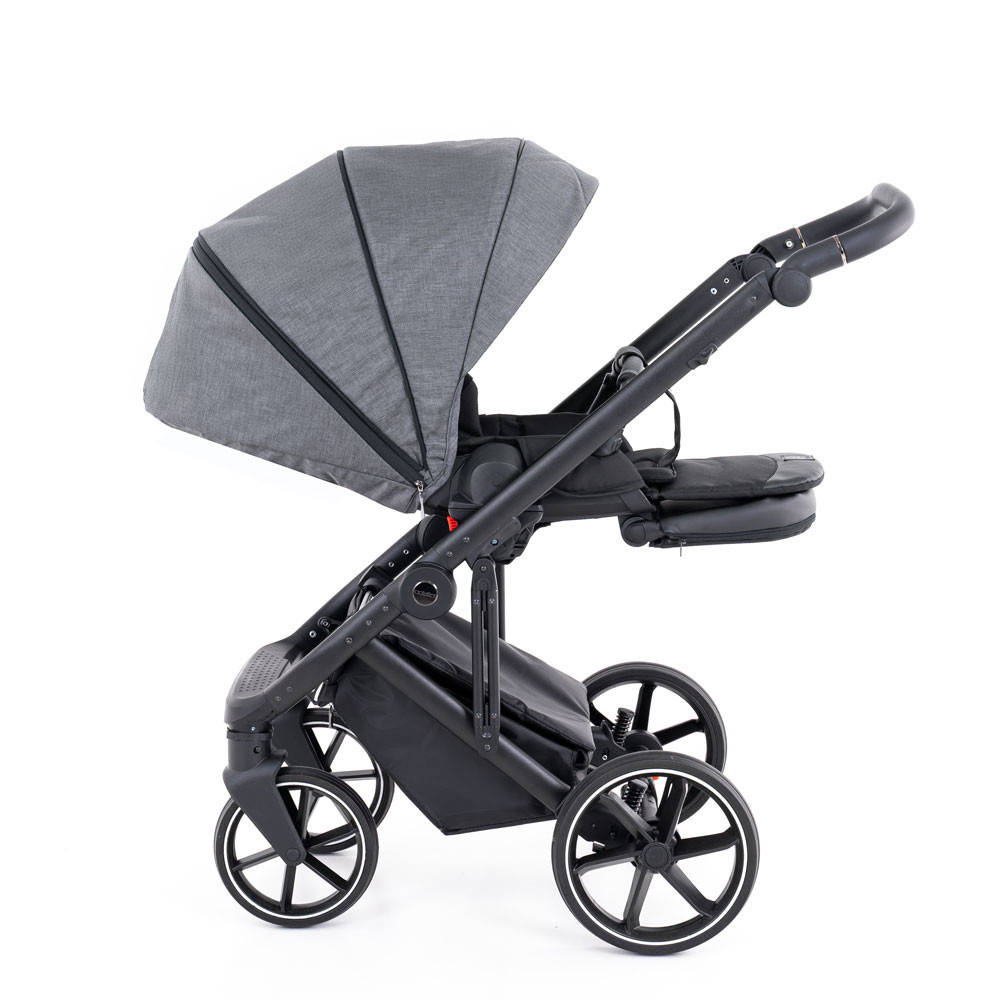 A tolókar magassága 12 fokozatban állítható (71–110 cm között), elegáns eco-bőr borítással. Ez nemcsak ergonomikus fogást biztosít, hanem eleganciát is kölcsönöz a babakocsinak.