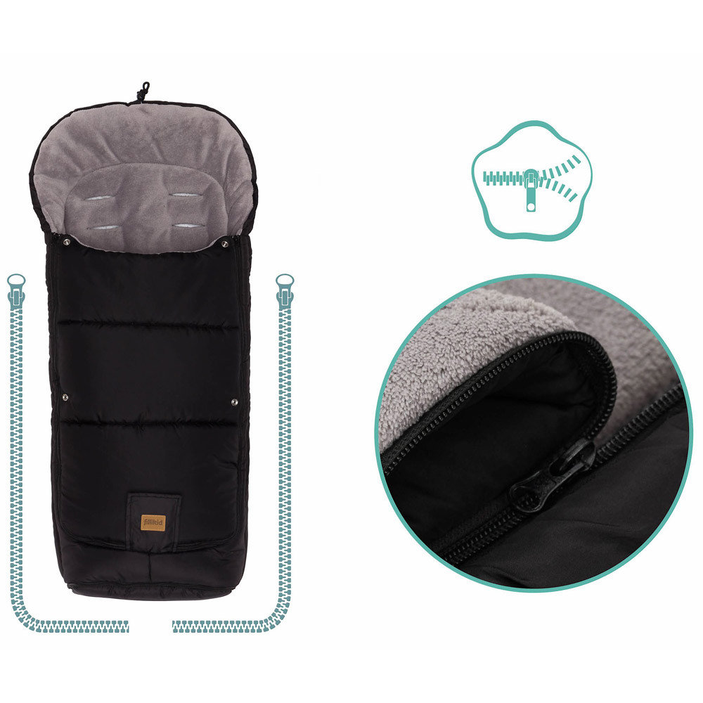 A Fillikid "Peak" téli lábzsák kiváló kényelmet és meleget biztosít gyermeke számára. Minden szabványos babakocsimodellel kompatibilis, intelligens kialakítása lábnyitással, övnyílásokkal, nyitógombokkal és csúszásgátló hátrésszel rendelkezik, ami biztos tartást biztosít séta közben. Kiváló minõségû, szélálló, vízlepergetõ anyagokból készült lábzsák. A külsõ réteg rendkívül tartós poliészterbõl, a belsõ réteg pedig puha coral fleece anyagból készült. Könnyû kezelni, mivel 30°C-on mosógépben mosható. Adja meg gyermekének a legjobbat a Fillikid „Peak” téli lábzsákkal.- kívül vízálló, szélálló, belül extra puha bélés- hátoldalán kicsúszás gátló tapadókorongocskákkal- a babaülés biztonsági öve 3 és 5 ponton is egyaránt átfûzhetõ- önállóan nyitható lábrész- a fejrésznél zsinórral összehúzható- középen teljes hosszában cipzárral nyitható így a baba nem tud bemelegedni ha fûtött helységbe érünk.Méret: 105 x 50 cm