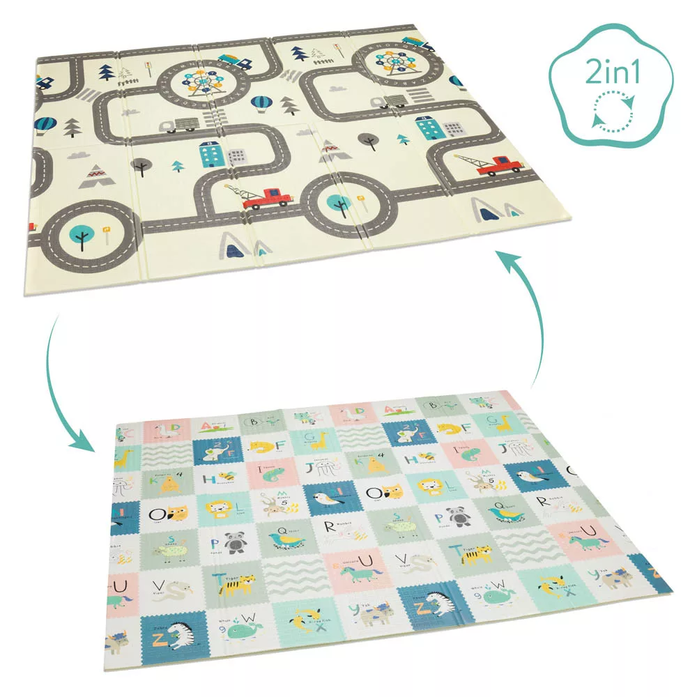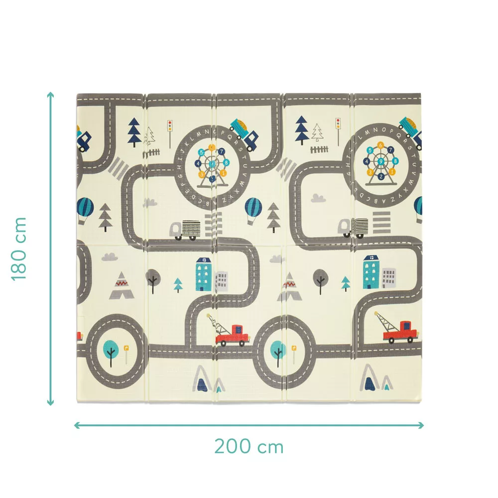 Az utca térképes játszószõnyeg ideális kisgyermeke számára, amely több órányi szórakozást biztosít bent és kint egyaránt. 180x200x1 cm-es méretével elegendõ helyet kínál ötletes kalandokhoz és kreatív játékokhoz.Ez a színes játszószõnyeg könnyen tisztítható, tartós és csúszásmentes, így tökéletes a gyerekszobába, a nappaliba vagy akár a kertbe is. Akár a földön játszik, akár a szabadban szaladgál, a játszószõnyeg biztonságos és színes felületet kínál.Mindkét oldalán két-két különbözõ motívumnak köszönhetõen a játszószõnyeg sokoldalú, és serkenti gyermeke fantáziáját. Dobozban érkezik, így könnyen szállítható és tárolható, és végtelen szórakozást tesz lehetõvé.A termék jellemzõi:- mérete: 180x200x1 cm- újszülött kortól használható- könnyen tisztítható és tartós- csúszásmentes és biztonságos bel- és kültéri használatra- kétoldalas kialakítás a sokoldalú felhasználás érdekében