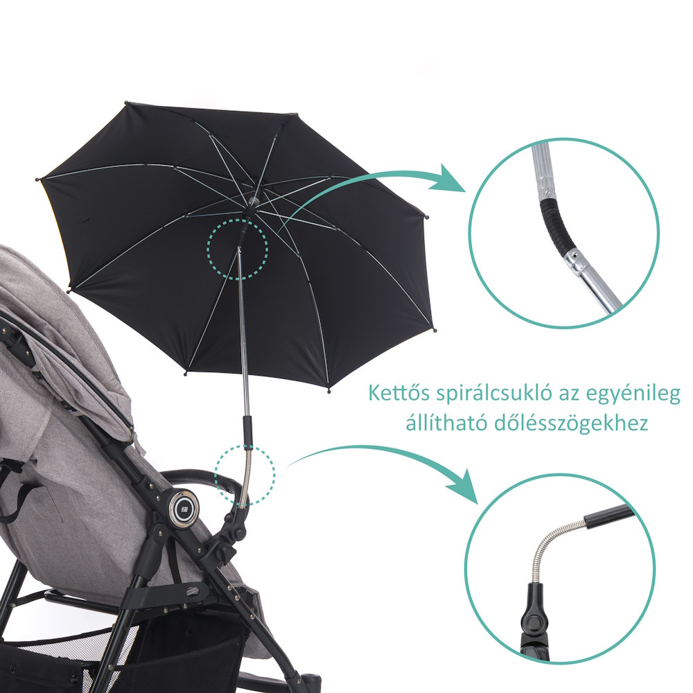 Mindenki szívesen megy sétálni a babakocsival, ha szép az idõ. De nem szeretnénk a kicsiket közvetlen napfénynek kitenni. A babakocsikhoz és sportbabakocsikhoz való "Style" napernyõ tökéletes védelmet nyújt gyermekednek a napsugárzás és a veszélyes UV-sugárzás ellen.A napernyõ kerek és ovális babakocsivázra egyaránt illeszkedik, és kompatibilis a legtöbb babakocsival és sportbabakocsival.A dupla spirálos csatlakozásnak köszönhetõen a napernyõ optimálisan és egyedileg állítható.A napernyõ anyaga 50 plusz faktorszámú UV-védõ bevonatú poliészter. Vízlepergetõ is, így könnyen és praktikusan tisztítható. - több ponton állítható dõlésszög a kettõs spirálcsuklónak köszönhetõen- megszûri az ultraibolya sugárzást (UV 50 plusz)- kerek és ovális vázas babakocsikhoz is ajánljuk- 72 cm átmérõjû ernyõ