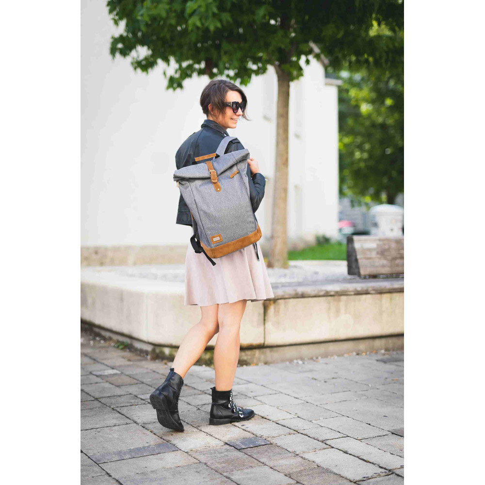 A roll-top stílusú Berlin pelenkázó hátizsákkal nem csak egy stílusos pelenkázó hátizsákot vehetsz a pelenkacseréhez szükséges összes funkcióval, hanem egy modern, vagány szabadidõs hátizsákot is, amelyet menõ megjelenésének köszönhetõen ezután is használhatsz. A valódi velúr bõr és a robusztus poliuretán techno szövet kombinációjának köszönhetõen a hátizsák nem csak nagyon minõségi megjelenésû, hanem tartós és minden túrára készen áll. Vizuálisan is vonzza a szemet, és divatos kiegészítõként is megállja a helyét a városban és a természetben egyaránt. A Berlin pelenkázó hátizsák nemcsak látványra szép, de rendkívül praktikus is. A roll-top zárás 20 literrõl 22 literre növeli a térfogatot, teljesen nyitott állapotban pedig akár 25 literre is. A praktikus mágneses zárással a bõr csat másodpercek alatt kinyitható. Ezen kívül egy extra nyílás található a hátulján, hogy gyorsan és könnyen hozzáférhessenek az aljában elhelyezett dolgokhoz. Az elülsõ praktikus rekeszben helyet biztosít a mellékelt pelenkázólap, a hátsó kis extra rekesz pedig biztonságos tárolási helyet biztosít a pénztárca, kulcsok vagy más fontos tárgyak számára, így megbízhatóan véd a tolvajok ellen. Az oldalakon két praktikus rekesz található, amelyekben akár 0,5 literes palackok is elférnek. További érdekesség, hogy az egyiket termikus anyaggal bélelték ki, ami azt jelenti, hogy a cumisüveget tovább lehet melegen tartani, vagy a mama, apuci italát hosszabb ideig hûteni. Az ergonomikusan kialakított és puha párnázott hordozó fogantyúknak köszönhetõen a Berlin pelenkázó hátizsák hosszabb sétákon is nagyon kényelmes. Az univerzális hátizsákot két mellékelt rögzítõkapocs teszi teljessé, így a hátizsák könnyen rögzíthetõ a babakocsi vagy sportbabakocsi fogantyújához. További biztonsági funkcióként ezek a kapcsok éjszaka vagy alkonyatkor visszaverik az autó fényszóróinak fényét.- roll-top hátizsák mágneses zárással- változtatható méret – 20L - 25L-ig- valódi bõrrészek- babakocsihoz rögzíthetõ- pelenkázólap- termikus rekesz palackok számára- ergonomikus, jól párnázott fogantyúkMéretek teljesen nyitott állapotban: (H)x(Sz)x(Ma): 28x16x55 cmMéretek teljesen zárva: (H)x(Sz)x(Ma): 28x16x41 cmSúlya: 700gÛrtartalma: 20L/22L/25LAnyaga: a bõrrészek, mint az alsó rész, a cipzár, a fogantyú és a csat velúrból készültFõ anyaga: poliamid, poliuretán