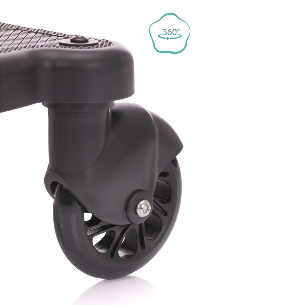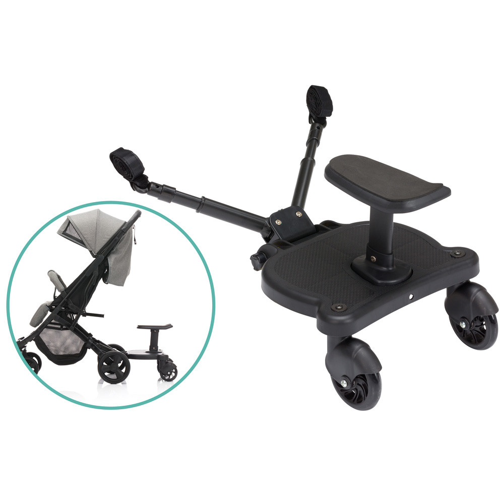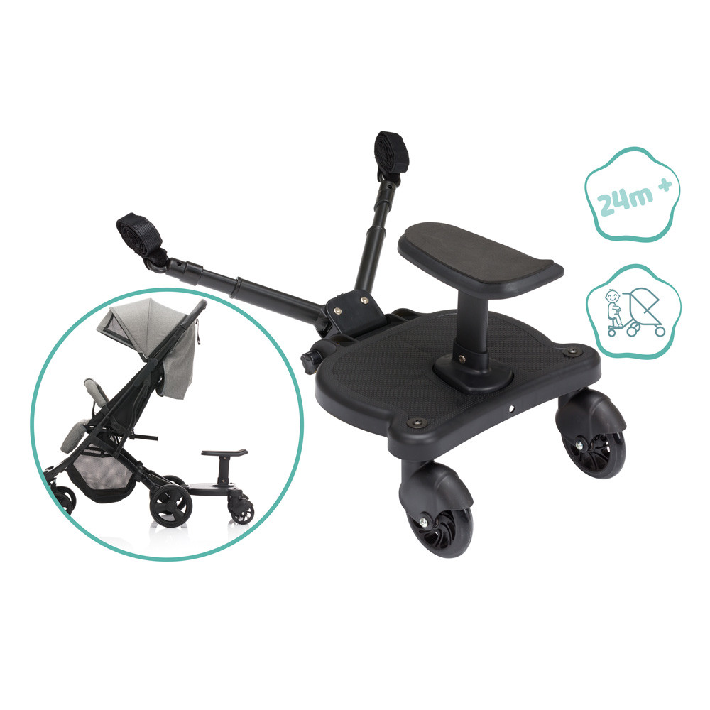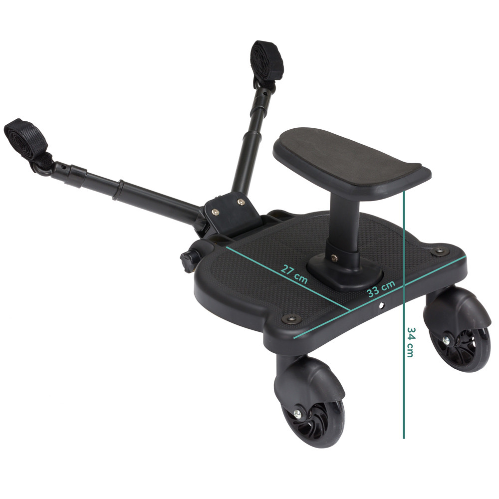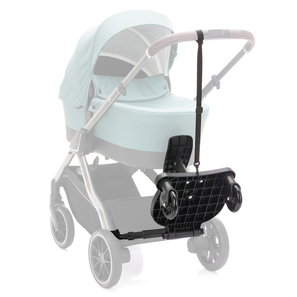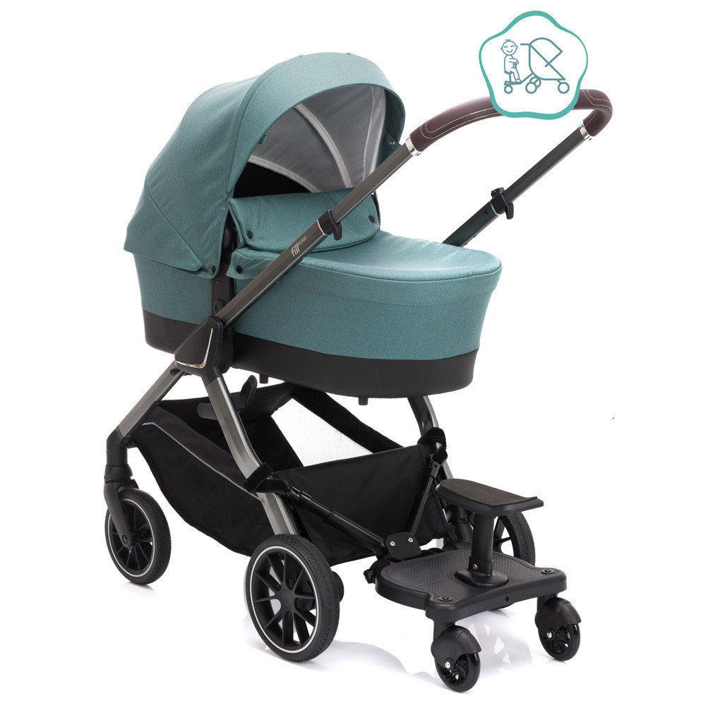 Fillikid Basic testvérfellépõ szettA nagyobb testvérek nagyon várják a kistestvér érkezését. Így nagyon is érthetõ, hogy minden sétának részesei akarnak lenni, és büszkén mutatják meg kistestvérüket mindenkinek.De ha a nagyobb gyermek kicsit elfárad az út során, és pihennie kell, a Fillikid Basic praktikus kiegészítõ üléssel az optimális megoldás. Az alacsony, 1,85 kilós önsúlynak és a nagyon simán futó kerekeknek köszönhetõen nem okoz gondot a tolása a szülõknek. Könnyen, szerszám nélkül rögzíthetõ keresztirányú és függõleges támasztékokra, és szinte minden babakocsira és babakocsira illeszkedik. A Basic testvérfellépõ a csatlakozó rendszernek köszönhetõen 50cm szélességig állítható. Ezzel a praktikus társsal semmi sem áll útjában egy hosszú sétának gyerekekkel a természetben!A Fillikid testvérfellépõ maximális teherbírása 25 kg. Ha a gyermeknek éppen nincs szüksége a testvérfellépõre, egyszerûen rögzítheti a babakocsi tolókarjához egy pánttal.Az ülõke levehetõ, a testvérfellépõ anélkül is használható. (Az ülõke önmagában nem használható, csak a testvérfellépõvel együtt.)Jellemzõk:- 2-tõl kb. 5 éves korig használható- Maximum 25 kg-ig terhelhetõ- Gyors és egyszerû felszerelés - Könnyen rögzíthetõ a tolókarhoz a mellékelt szállítópánttal- Két bolygókerékkel- A két csatlakozó kar közti távolság kb. 50 cm– A testvérfellépõ szett tartalmazza a rászerelhetõ ülõkét is kis kapaszkodóval- A termék súlya: 1,85 kg- A testvérfellépõ 27 x 33cm