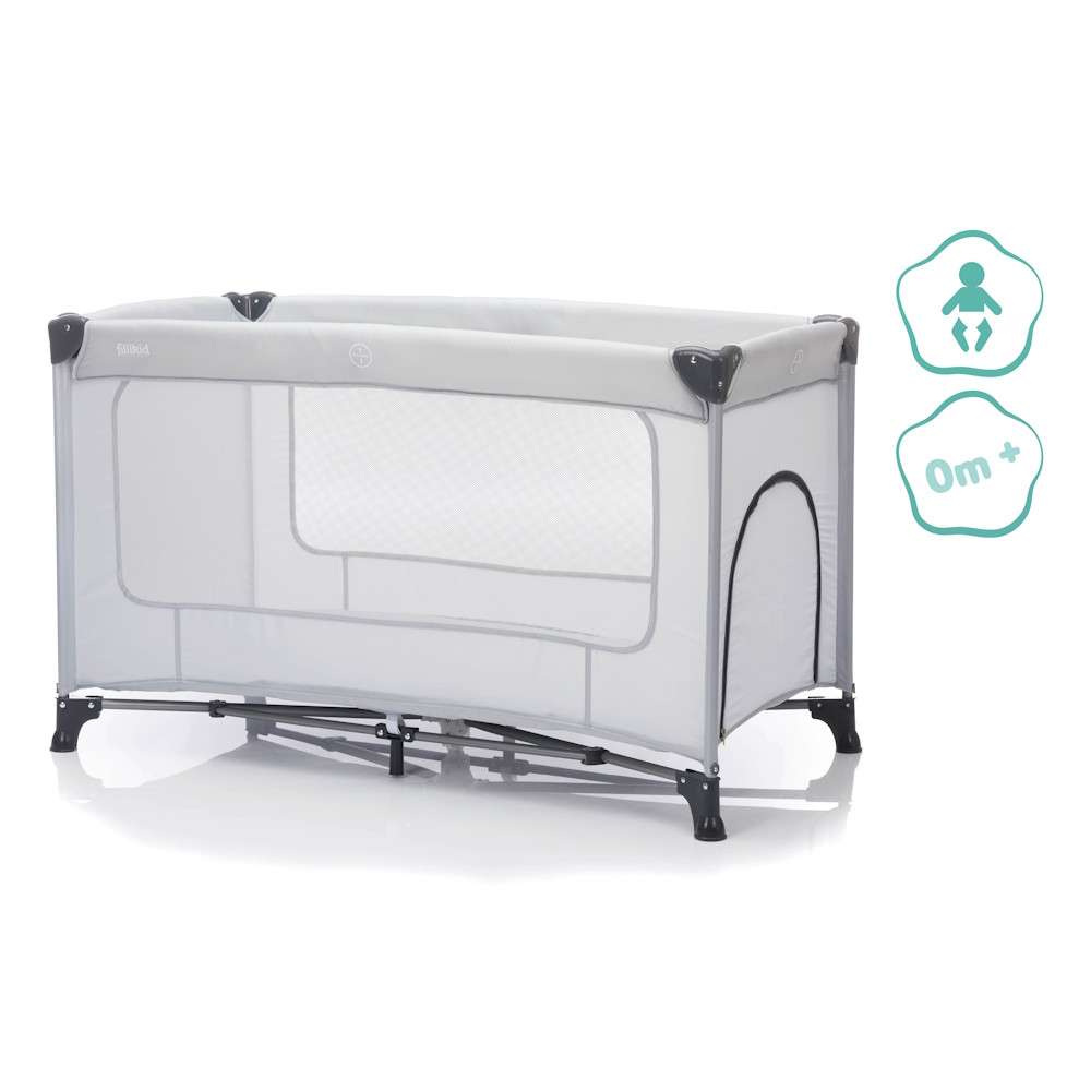 Fillikid Nizza utazóágyGyorsan kinyitható illetve gyorsan és könnyedén kisméretûre összecsukható utazóágy praktikus szállítótáskával- Újszülött kortól használható. - Az összecsukható babaágy maximum terhelhetõsége 15 kg.- Hálós falakkal, melyek nem engedik a babát elkószálni, de megfelelõ kilátást és szellõzést biztosítanak a számára- Az utazóágy rövidebb oldalán lévõ cipzárral nyíló kibúvón át a nagyobb gyerekek önállóan be- vagy kimászhatnak.- Méret (fekvõfelület): 120x60cm- Mérete nyitva: 125x65x76 cm- Huzat anyaga: 100% poliészterTartalma: utazóágy, merev aljú fekvõbetét, szállítótáskaOtthoni használatra vagy útközben. Ha szeretnéd, hogy gyermeked otthon érezze magát utazás közben vagy a nagyszülõknél is, a Fillikid Nizza utazóágyunk a megfelelõ választás. Könnyen és kompaktan összecsukható, a kiságyat a szállítótáskában magaddal viheted utazásaitokra. Az oldalsó része légáteresztõ hálós anyagból áll, amely nyugodt alvást garantál.