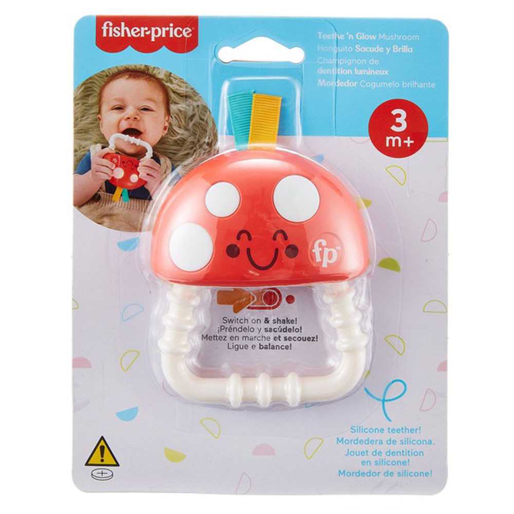 Gomba, gomba, gomba bújj a világomba! A Fisher-Price világító gomba rágóka egy fogzást segítõ csörgõ és egy szuper szórakoztató világító játék egyben, amely segíti a baba érzékeinek fejlesztését. A játék 100%-ban szilikon alapú és több színnel világít, ha a baba megrázza a gomba pajtását. Mérete: 14 x 5 x 18 cmA fejlesztés is lehet játék.Finom-motorika: a játék megragadása és rázása fejleszti a kicsik ügyességét és a szem-kéz koordinációt.Érzékelés: a különbözõ textúrák és fények hozzájárulnak a baba taktilis és vizuális érzékeinek fejlesztéséhez.- Fontos! A termék egészségvédelmi és higiéniai terméknek minõsül. Amennyiben a csomagolás felbontásra került, vagy a kipróbálás jelei látszódnak a terméken, úgy a 14 napos elállási jog érvényét veszíti a 45/2014. (II. 26.) korm. rendelet 29. § (1) bekezdése alapján.