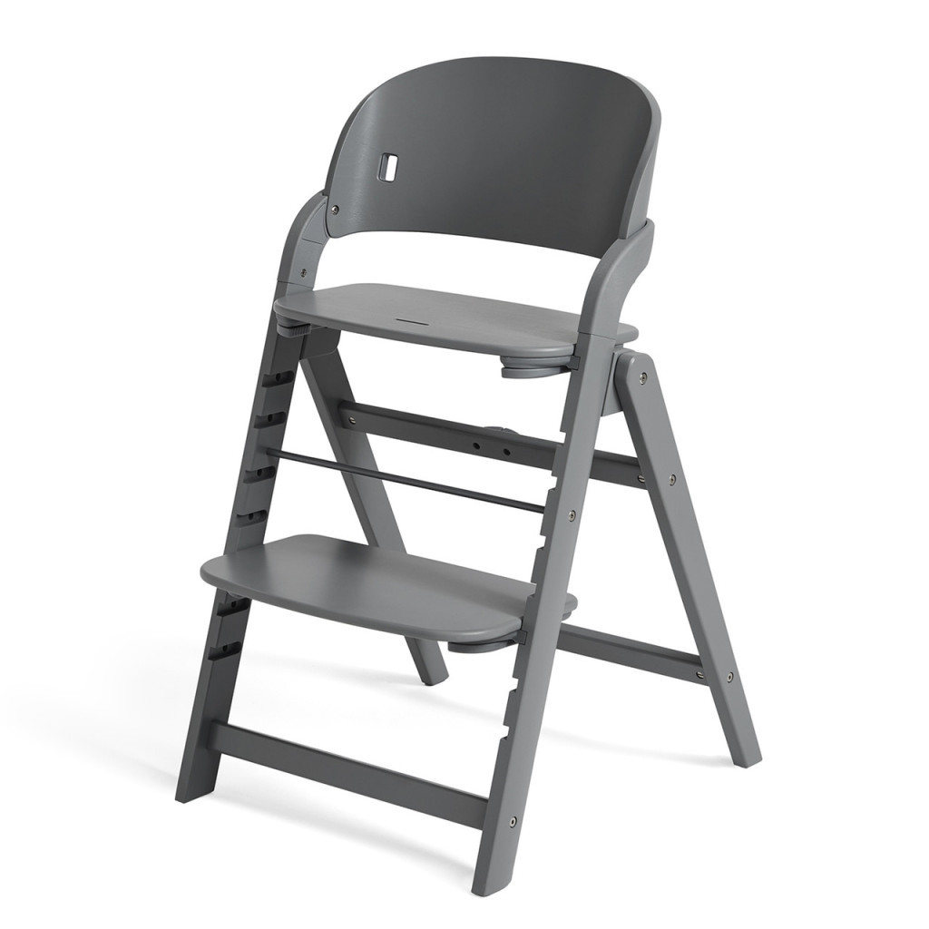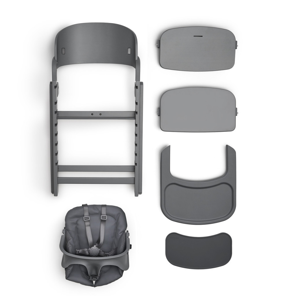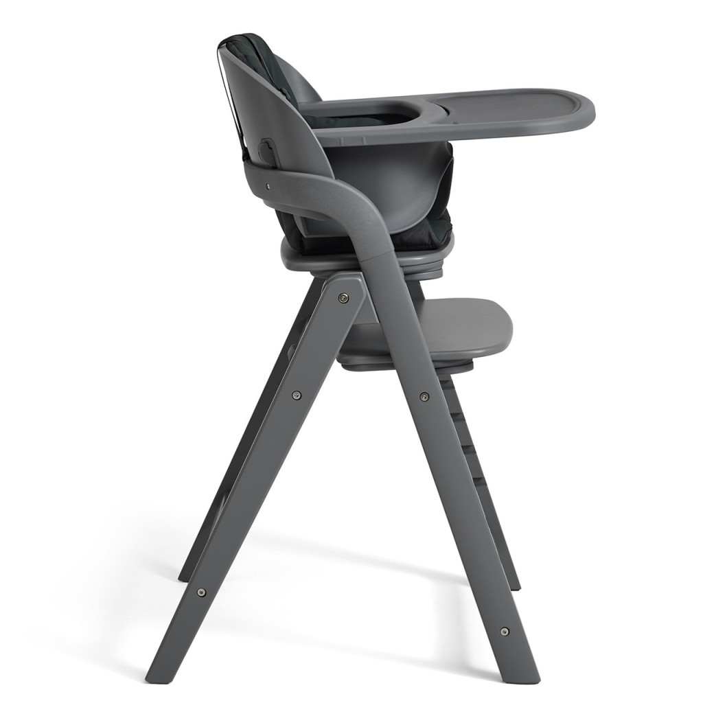 A tálca levehető, rugalmas szilikon betéttel rendelkezik, amely higiénikus, csúszásmentes és könnyen mosható. Az etetések után a tálca egy mozdulattal levehető, és a szék hátulján található tartóra helyezhető.